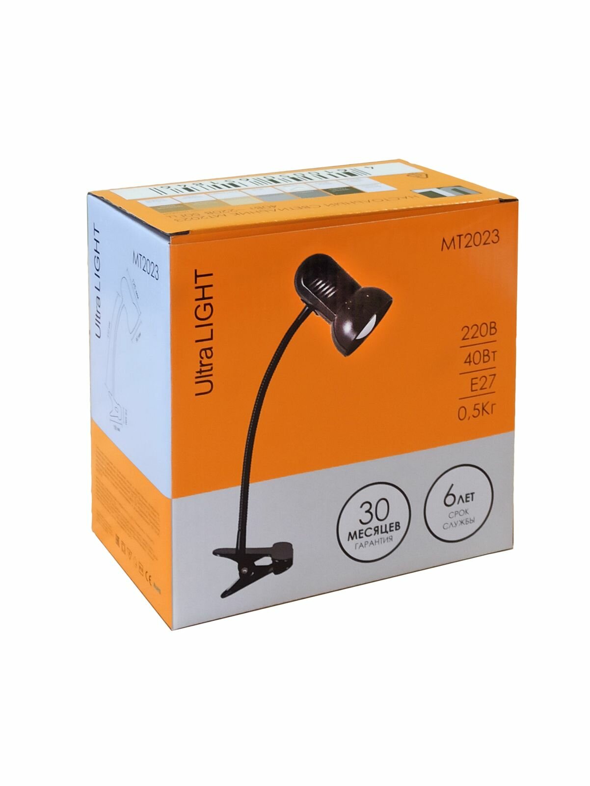 Настольная лампа на прищепке светильник МТ2023 чёрный полуглянец E27 220В Ultra LIGHT