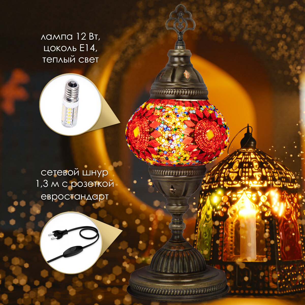 Купить Светильник настольный с восточной мозаикой ручной работы, красный, MARMA MM-LGHT-02