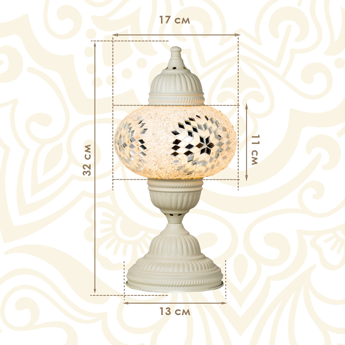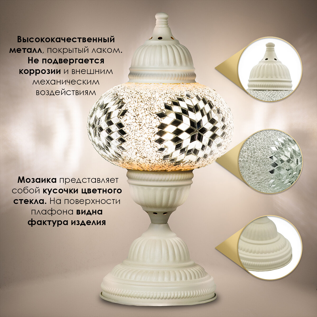 Купить Светильник настольный с восточной мозаикой ручной работы, цвет белый, 17х32 см, MARMA MM-LGHT-12
