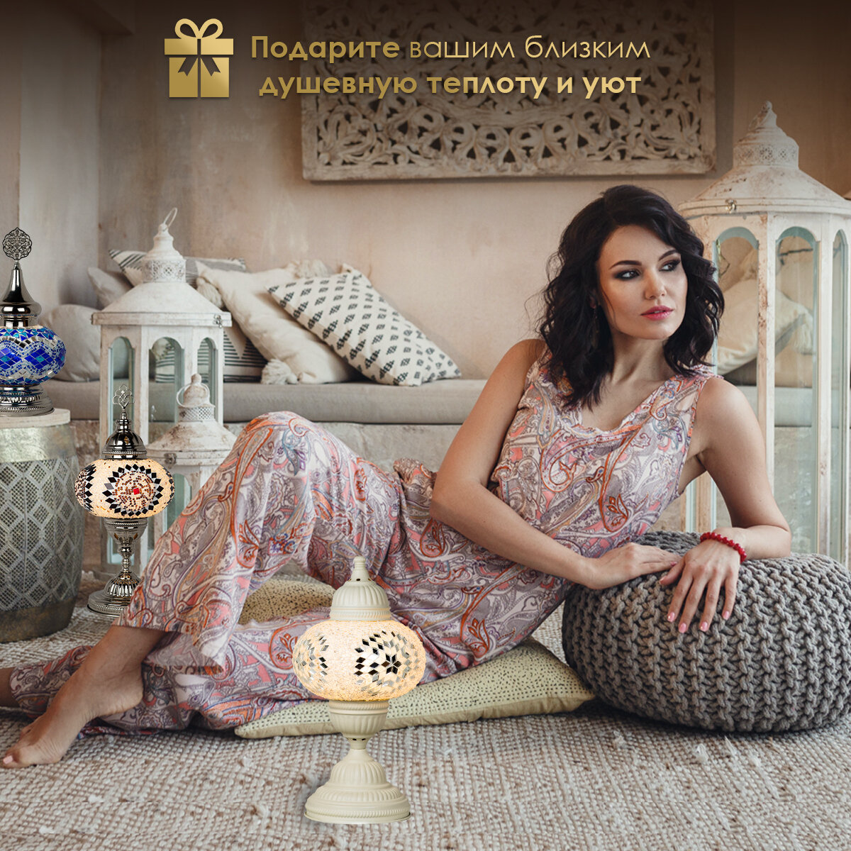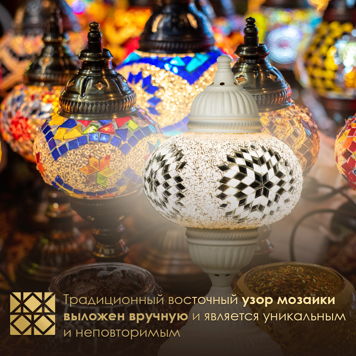 СохранитьСветильник настольный с восточной мозаикой ручной работы, цвет белый, 17х32 см, MARMA MM-LGHT-12 интересное: