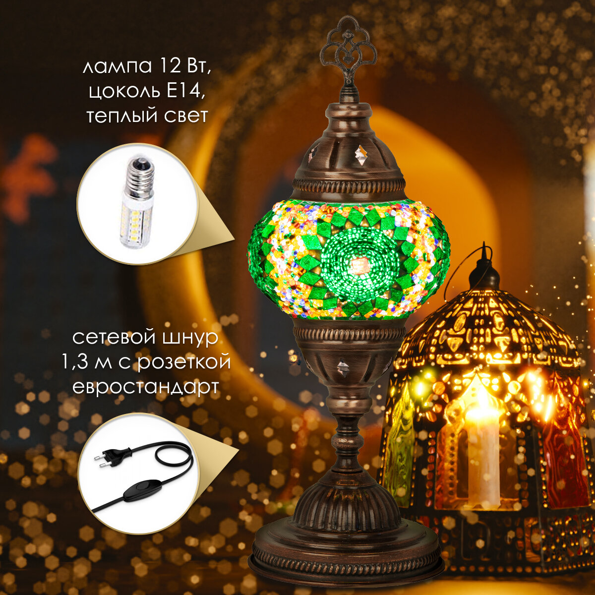СохранитьСветильник настольный с восточной мозаикой ручной работы, цвет зеленый, 12х36 см, MARMA MM-LGHT-05 интересное:
