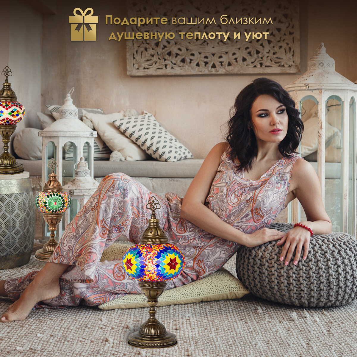 Светильник настольный с восточной мозаикой ручной работы, 13х15 см, MARMA MM-LGHT-13
