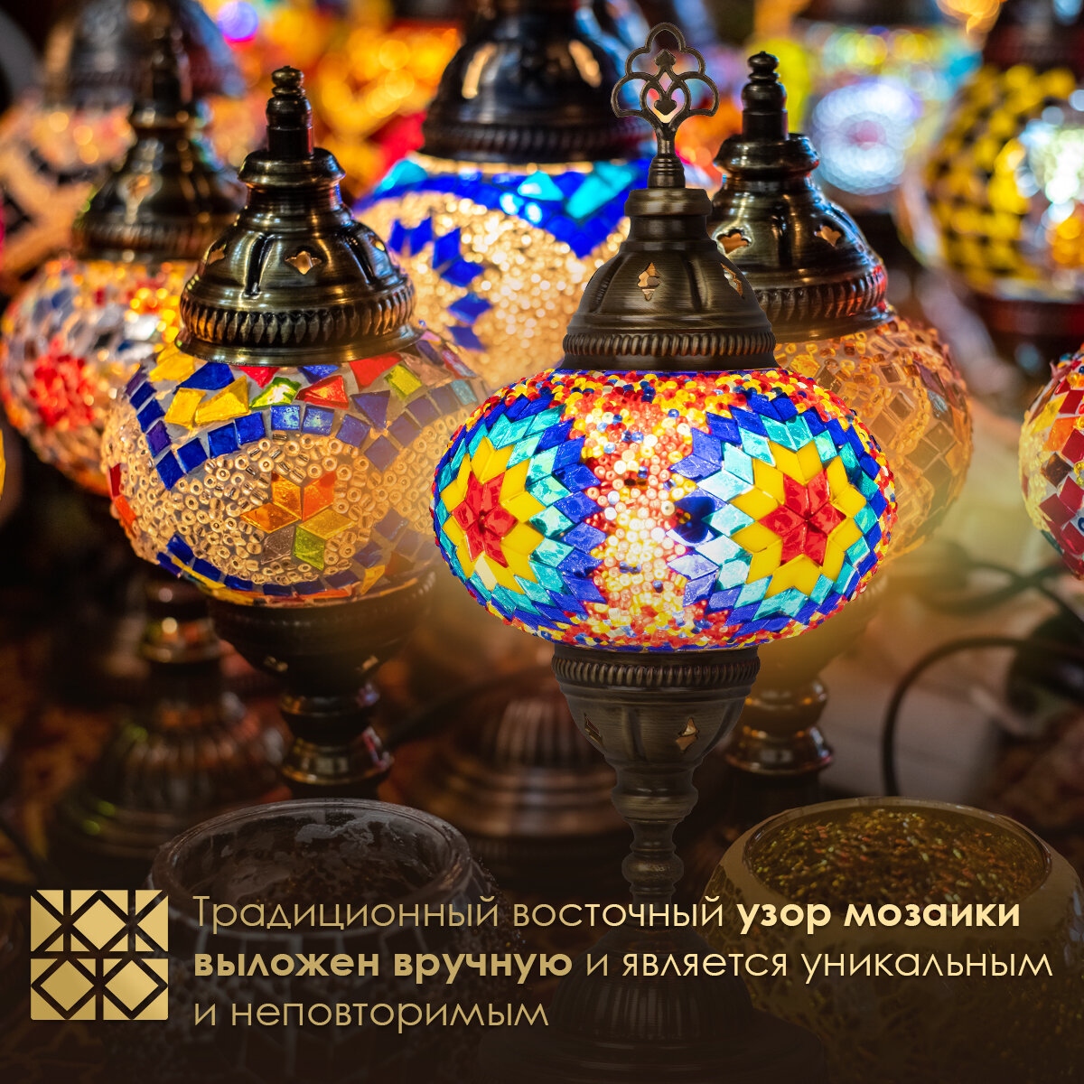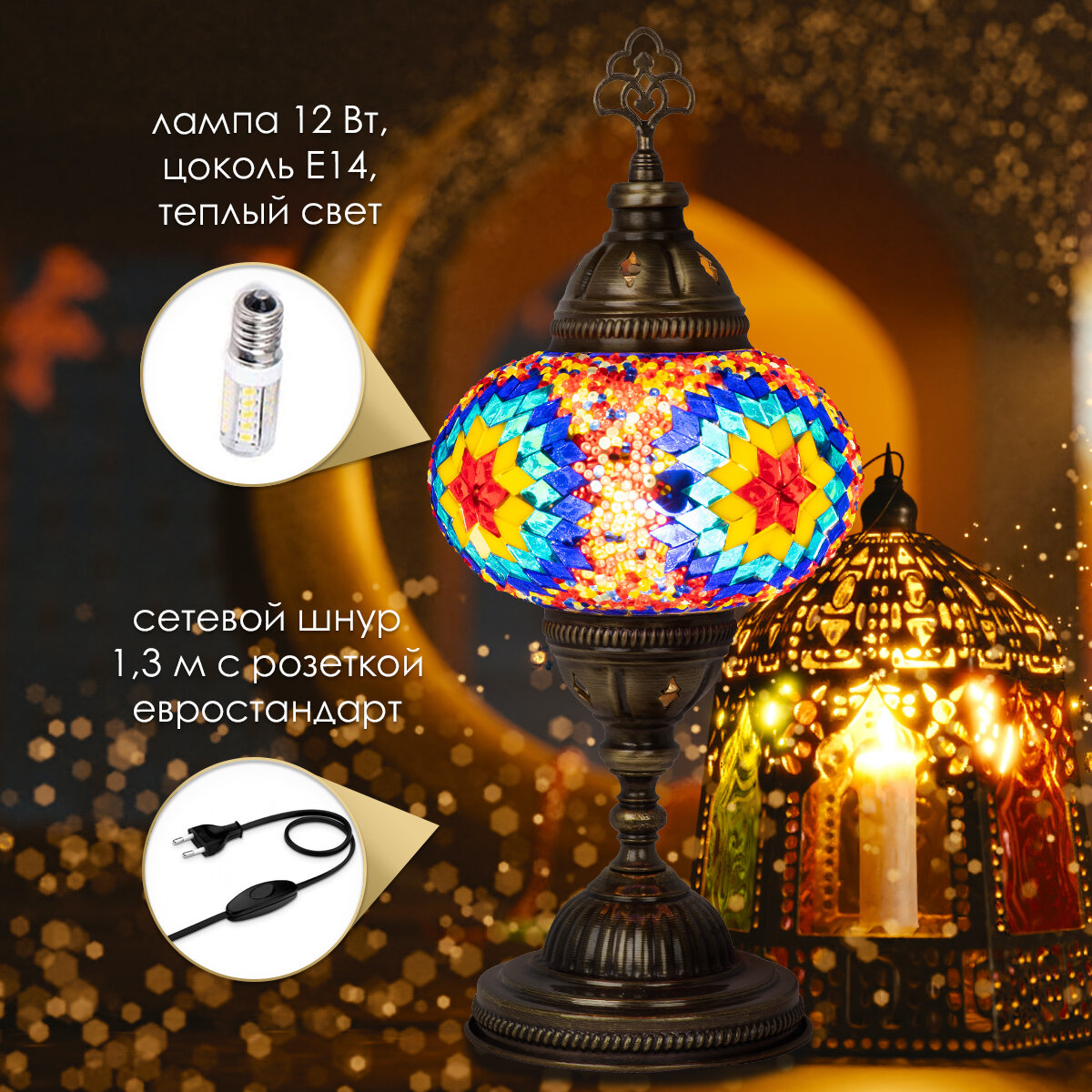 Купить Светильник настольный с восточной мозаикой ручной работы, 14х37 см, MARMA MM-LGHT-04