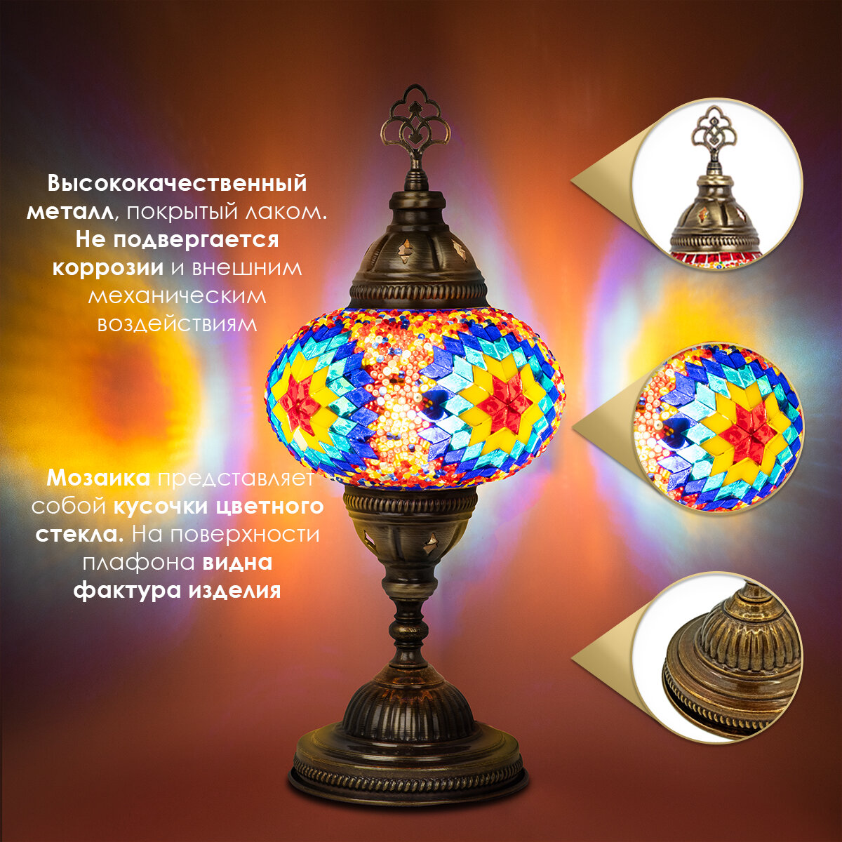 Светильник настольный с восточной мозаикой ручной работы, 13х15 см, MARMA MM-LGHT-13