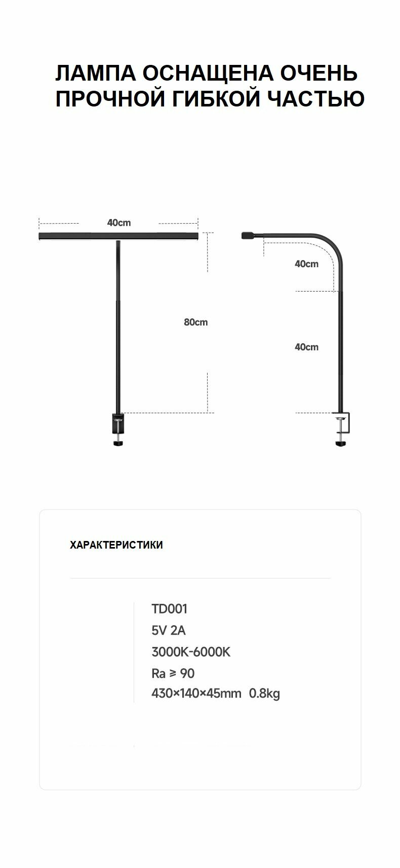 Настольная LED-лампа, 13 Вт, гибкий штатив, для дома и офиса, металлический интересное: