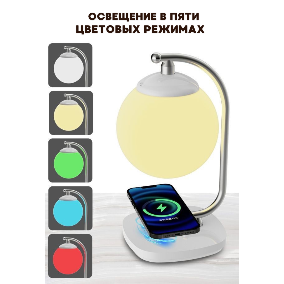 Лампа настольная, с беспроводной зарядкой для телефона, сенсорное управление, лофт интересное: