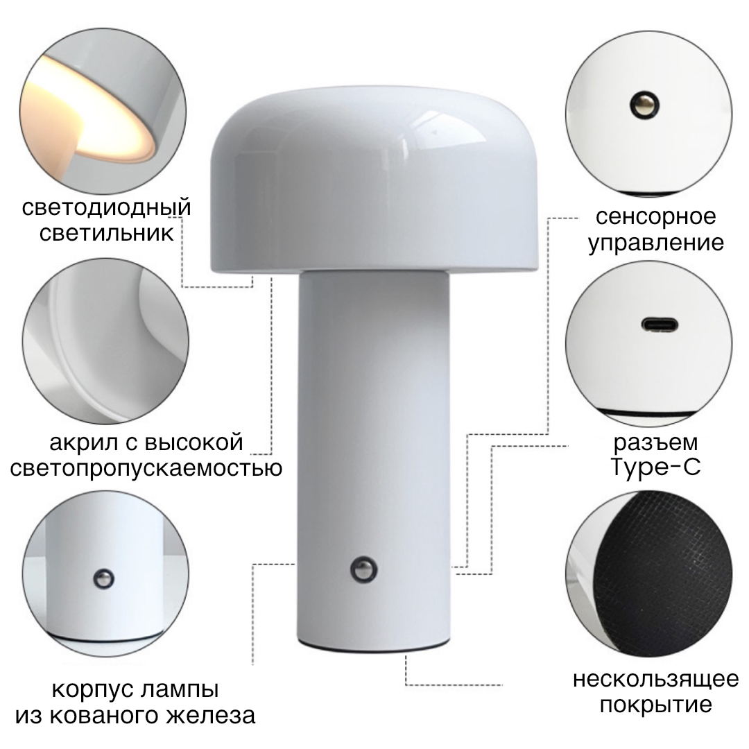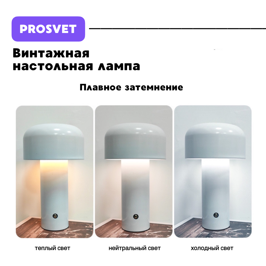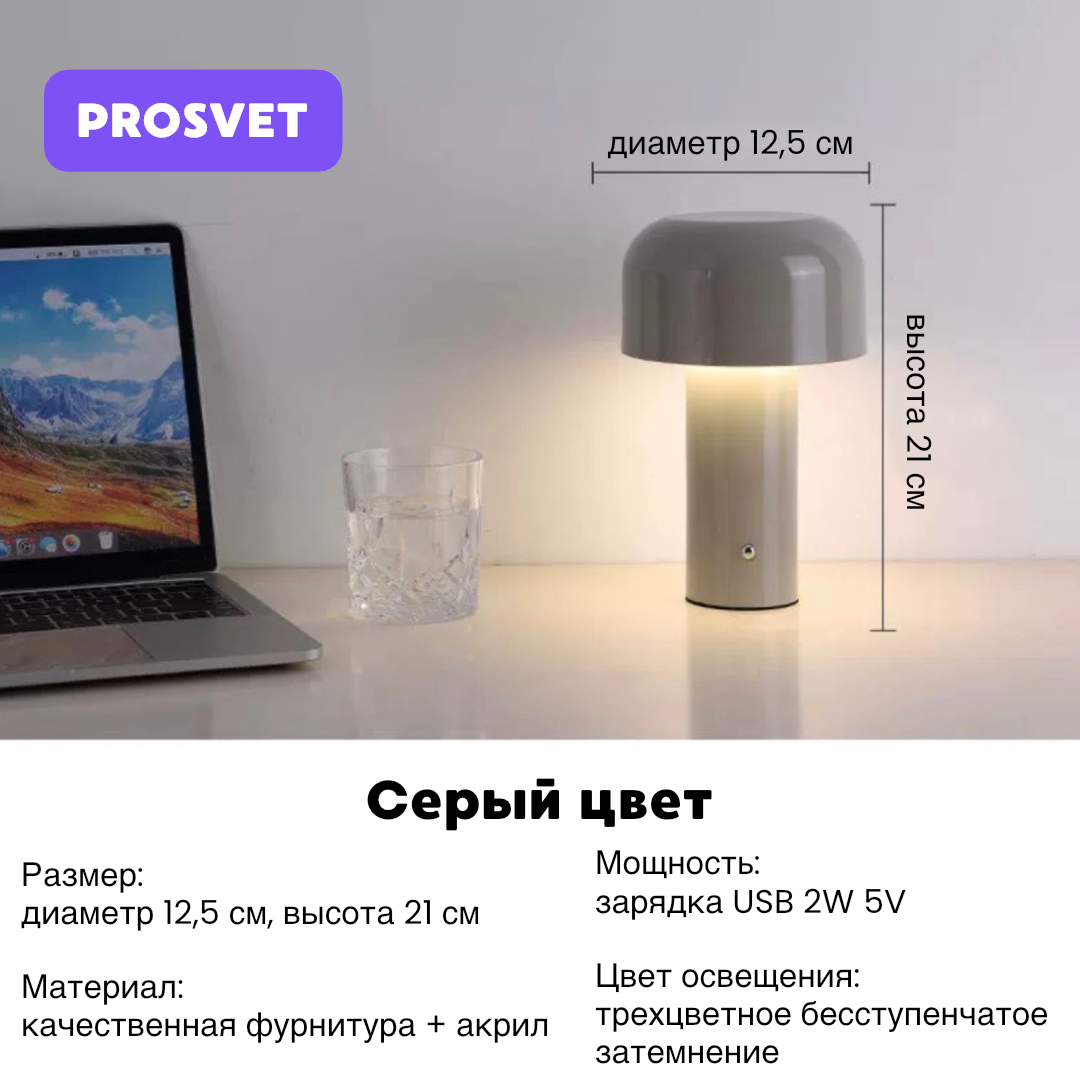 Настольная беспроводная лампа с регулировкой яркости, 3 режима света интересное: