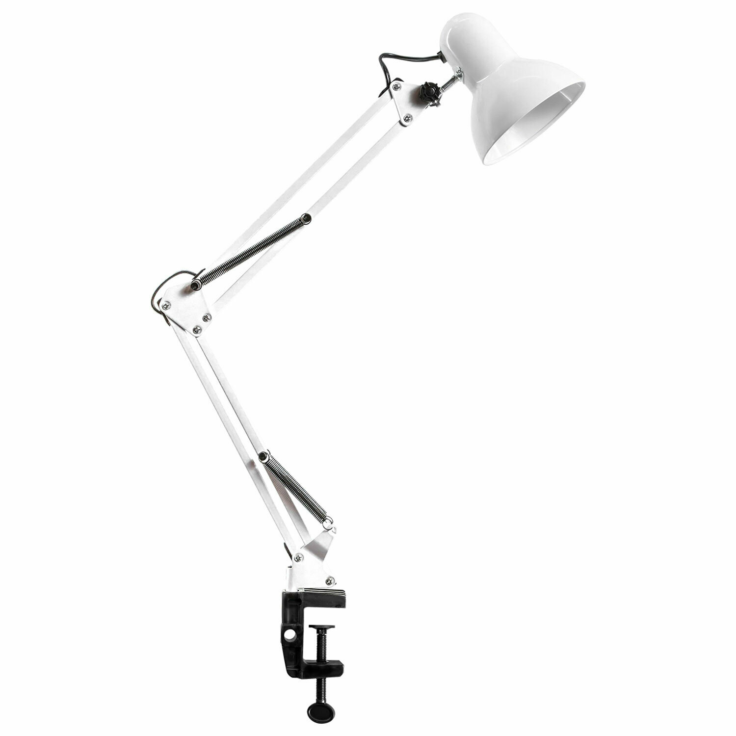Купить Лампа настольная, светильник на рабочий стол с лампочкой Е27, для школьника, офиса и дома на струбцине белый, 40 Вт, Daswerk, 238323