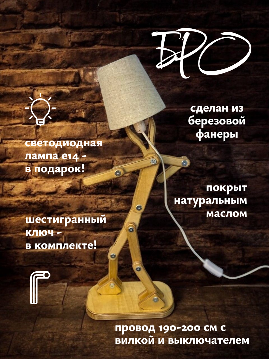 Ниже Вы можете прочитать отзывы на Светильник настольный деревянный с абажуром человечек, ознакомится с подробными характеристиками, посмотреть интересные обзоры и фотографии на Светильник настольный деревянный с абажуром человечек.