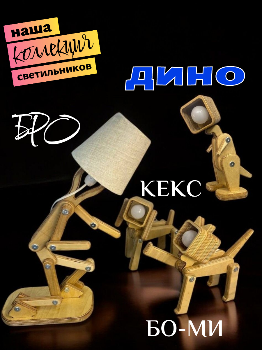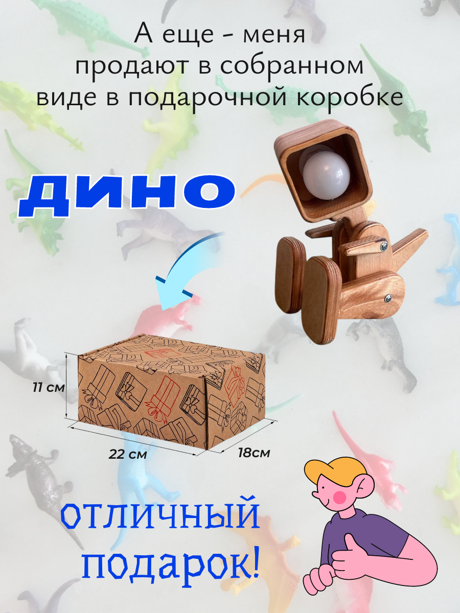 Светильник настольный мини TVENTE "Динозавр", деревянный, ночник для мальчика, лампа в комплекте интересное: