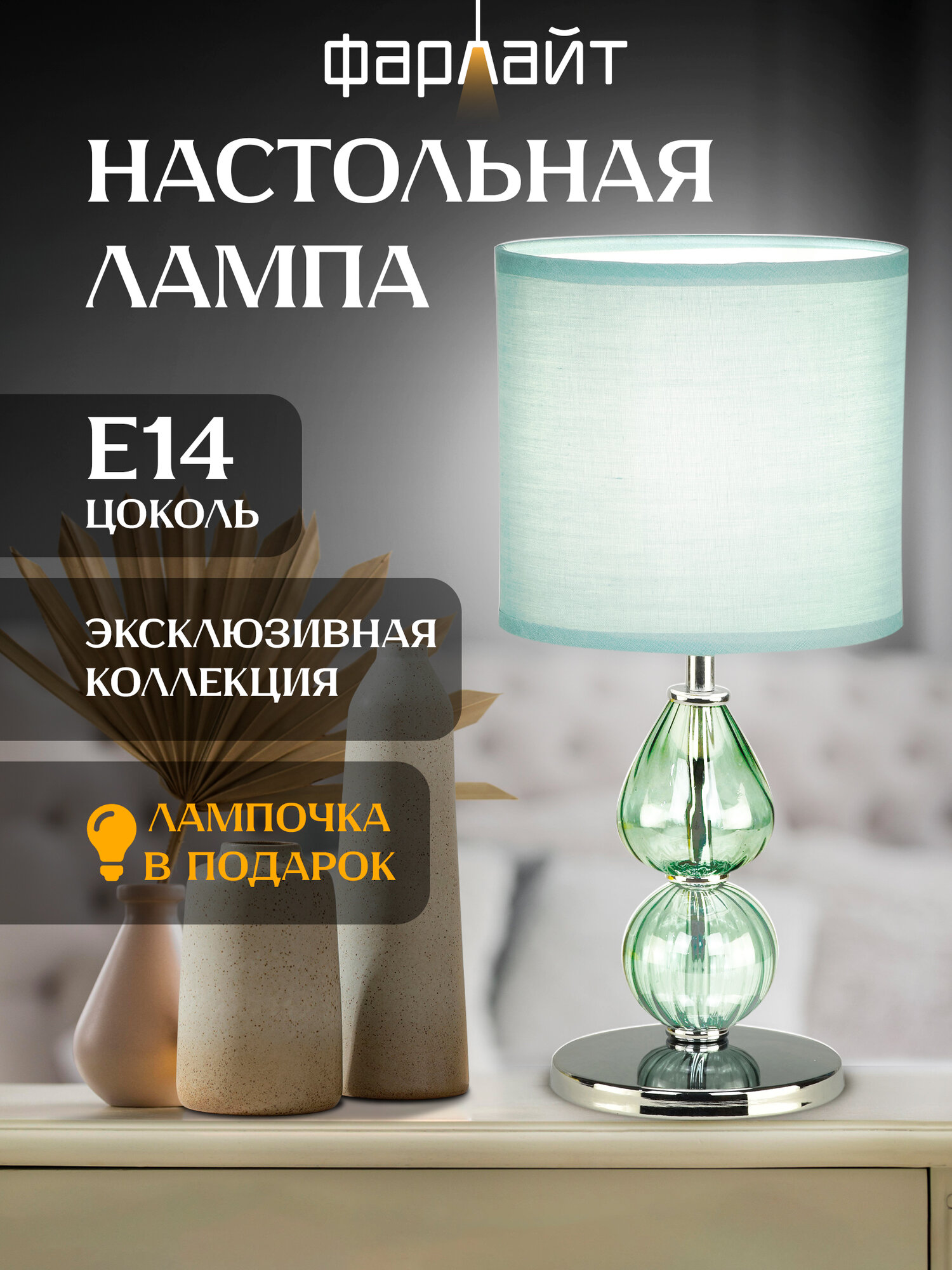 Светильник настольный декоративный "Винтаж" бирюзовый Е14 Фарлайт интересное: