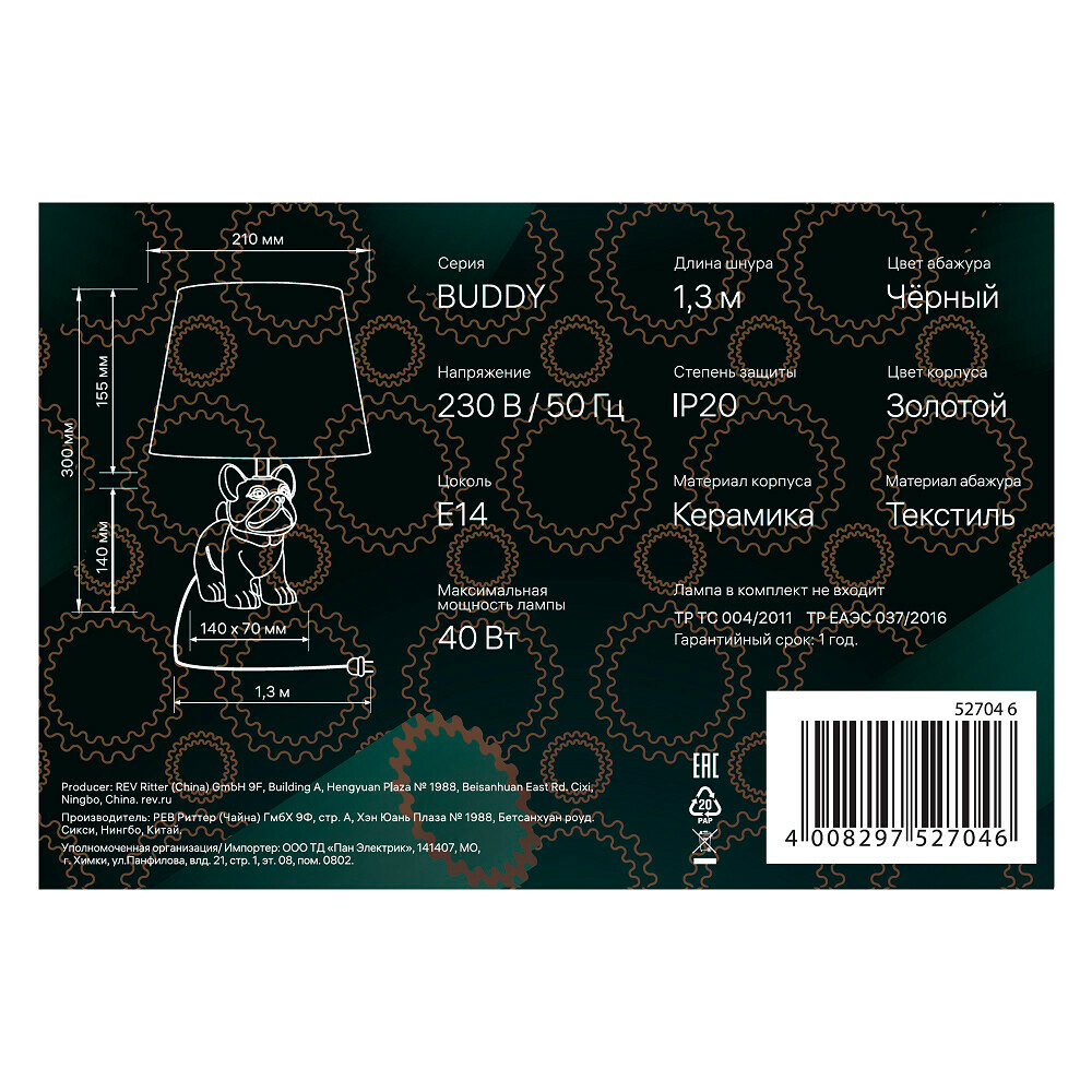 Лампа настольная E14 40 Вт Ritter Buddy (52704 6) интересное: