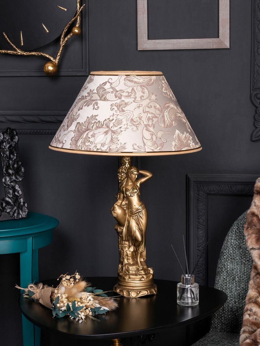 Настольный светильник Bogacho Девушка с кувшином на фигурной ножке с абажуром для украшения интерьера спальни и гостиной интересное: