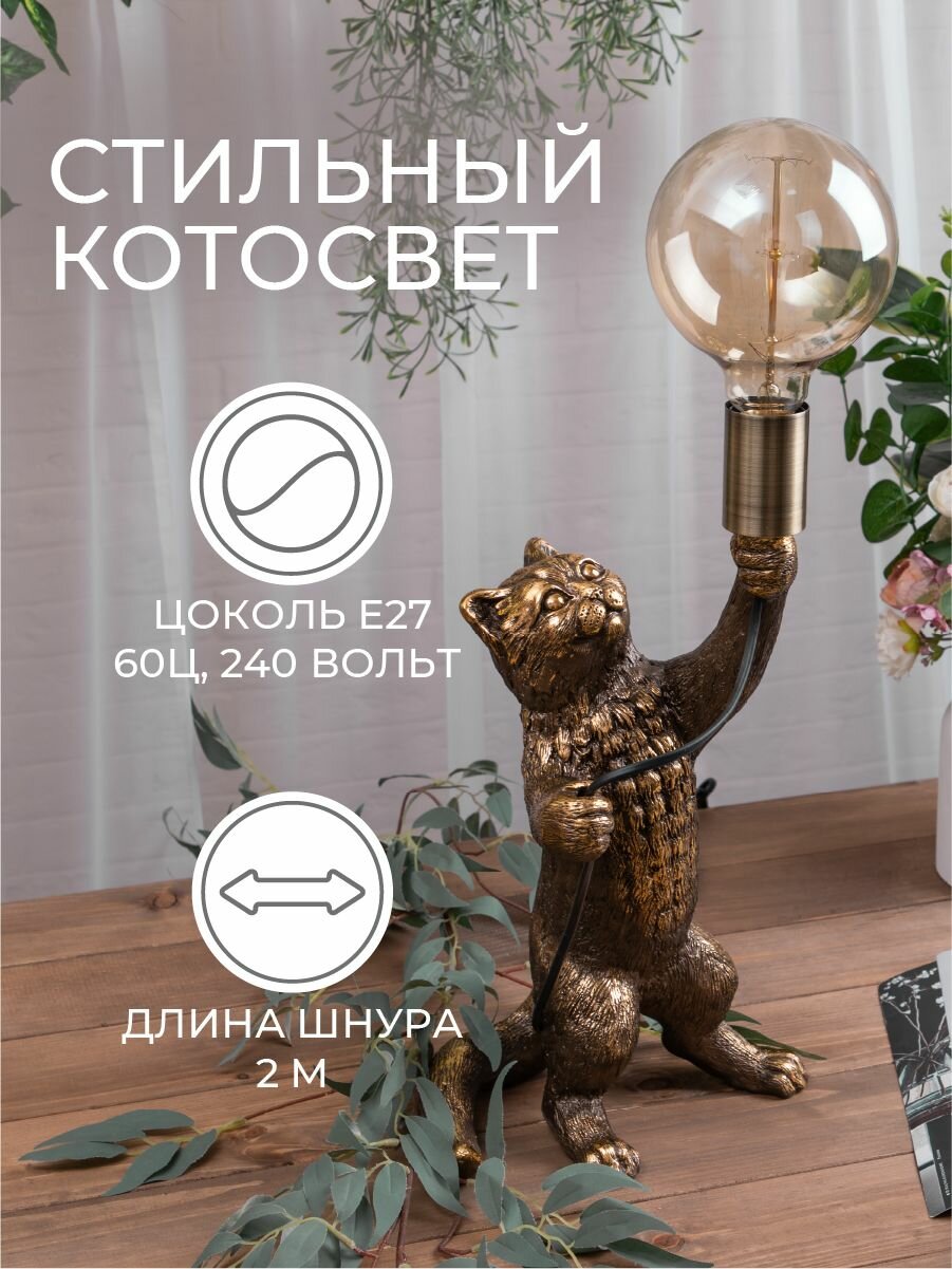 Настольный светильник Bogacho Кот Мэдисон для рабочего стола, тумбы, туалетного столика в спальне и гостиной интересное: