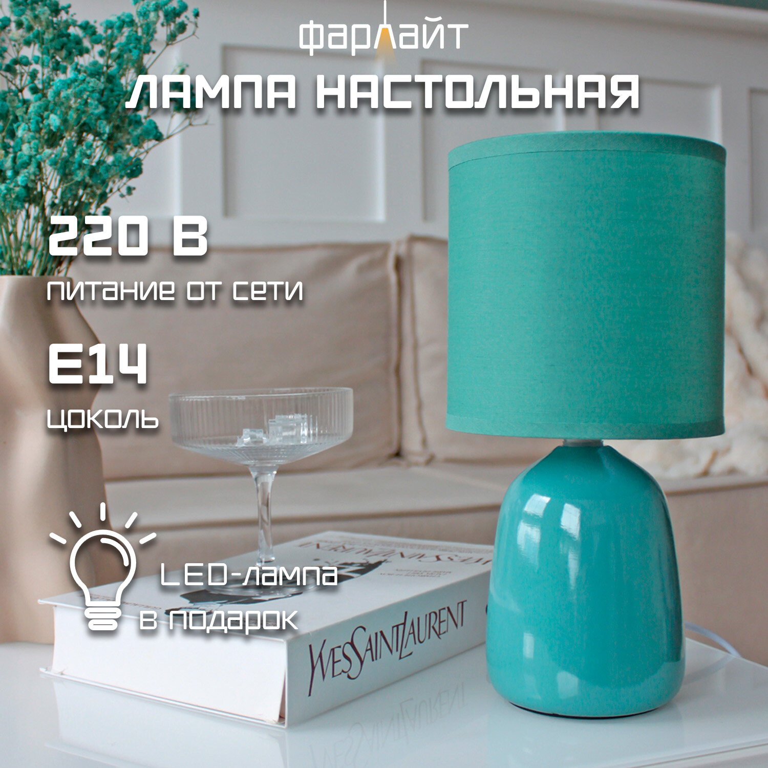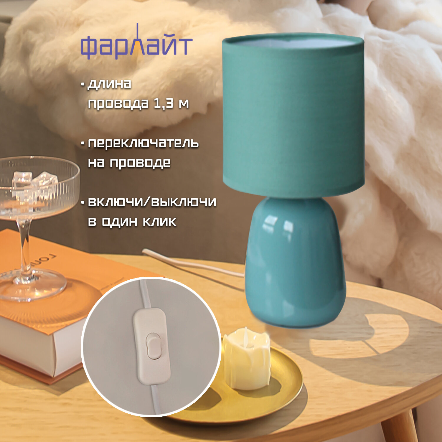 Светильник настольный декоративный "Капля" голубой Е14 Фарлайт интересное: