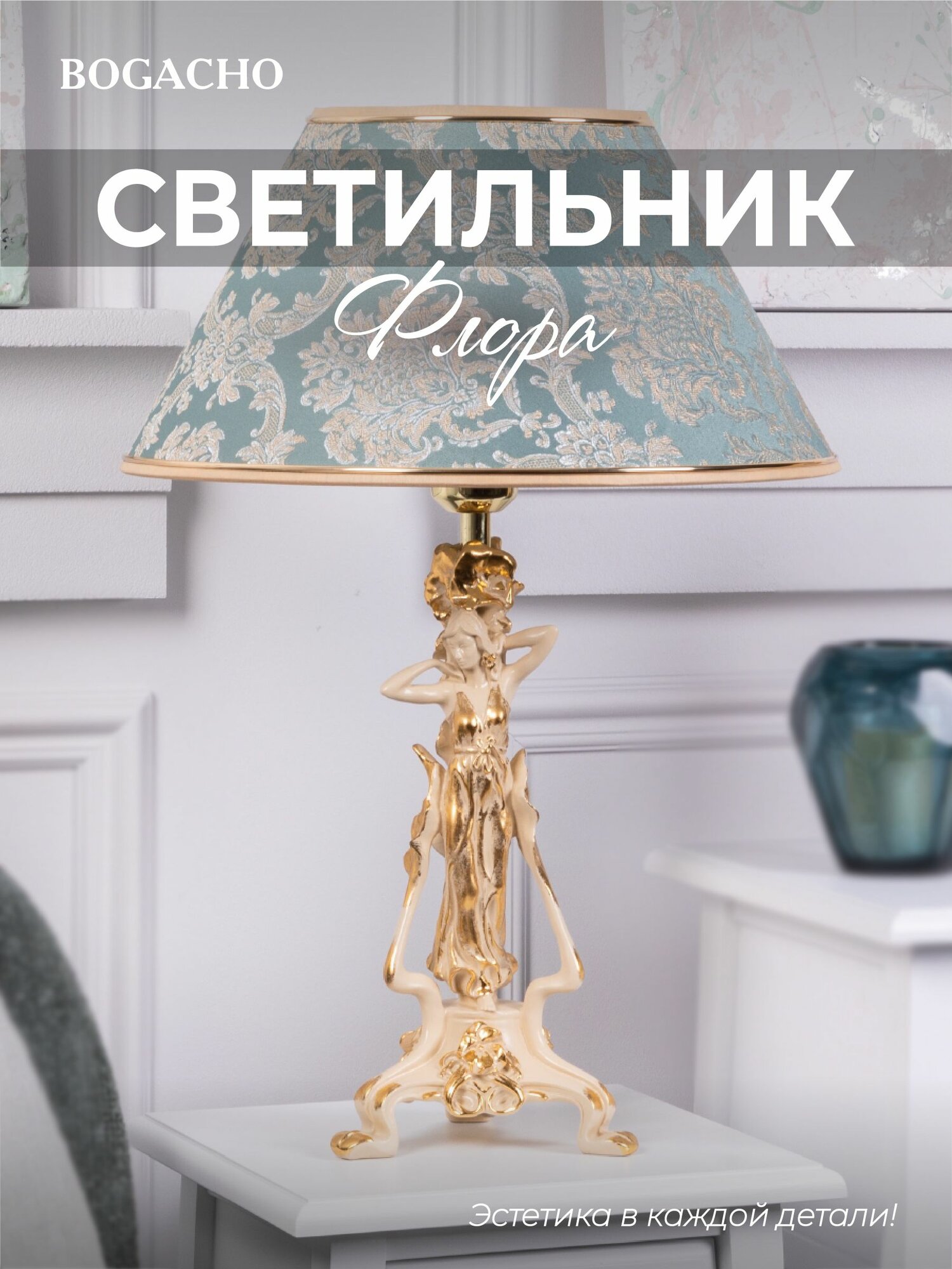 Настольный светильник Bogacho Флора на высокой ножке с абажуром для украшения интерьера спальни и гостиной интересное: