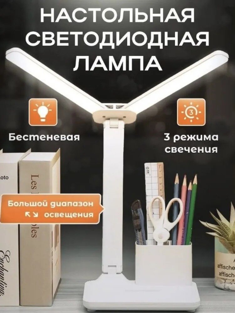 Настольная лампа с двумя плафонами 20W. Аккумулятор + USB на 5в. Настольная лампа домой и в офис. интересное:
