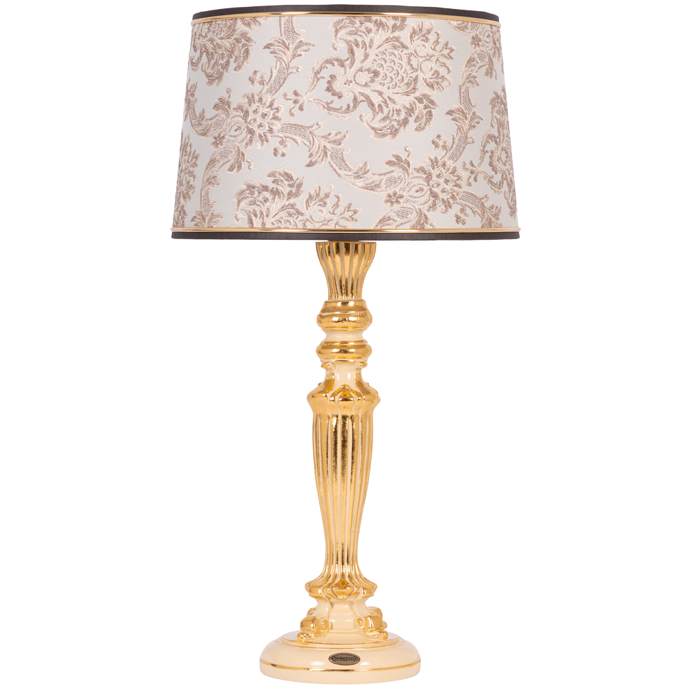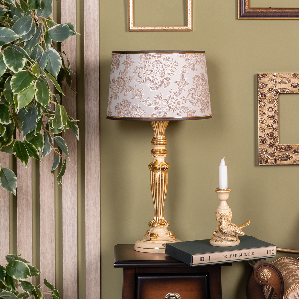 Купить Настольная лампа Bogacho Богемия бежевая с серо-коричневым абажуром Тюссо Ватикан