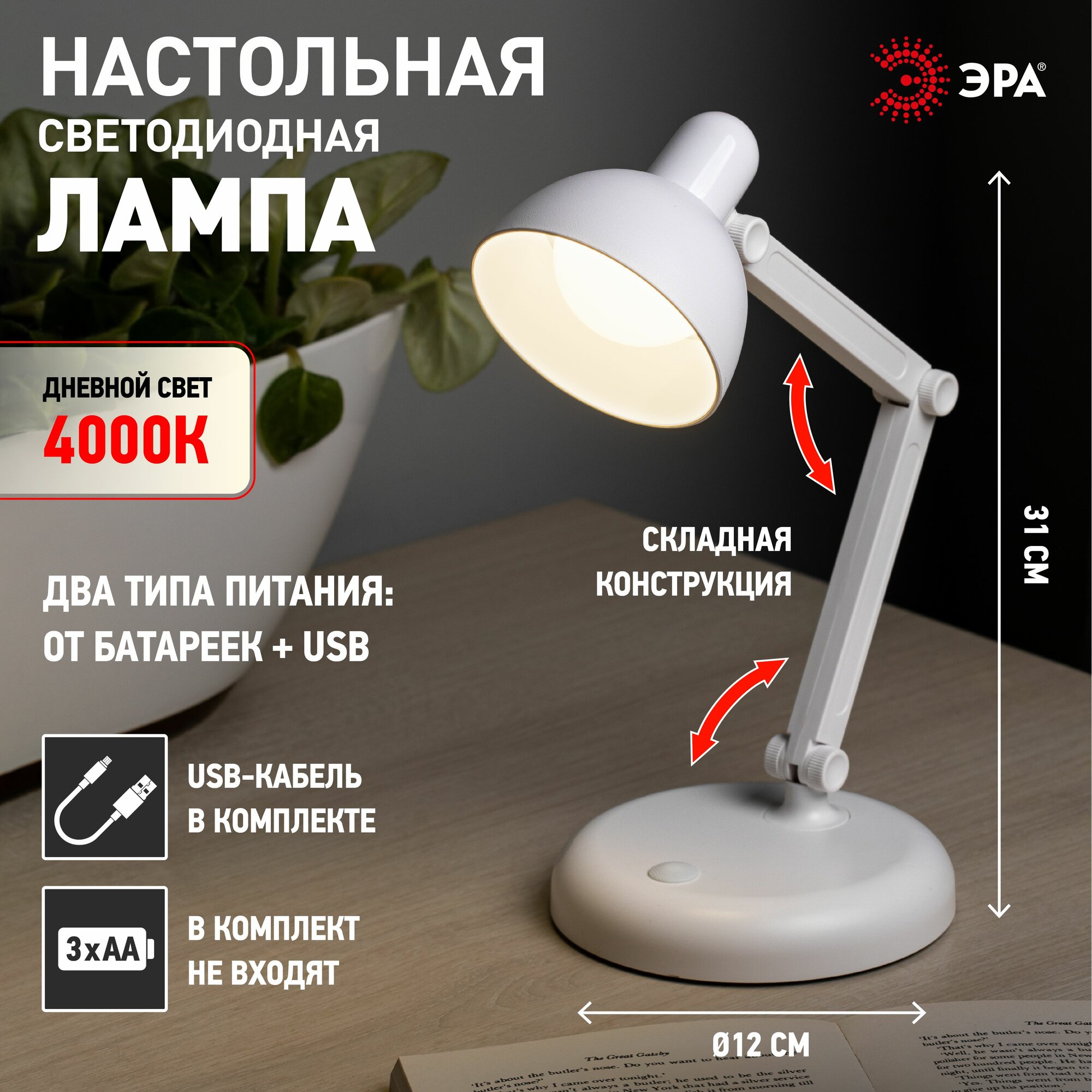 Лампа настольная светодиодная ЭРА NLED-514 для школьника на батарейках + usb 4Вт 4000К, белый интересное: