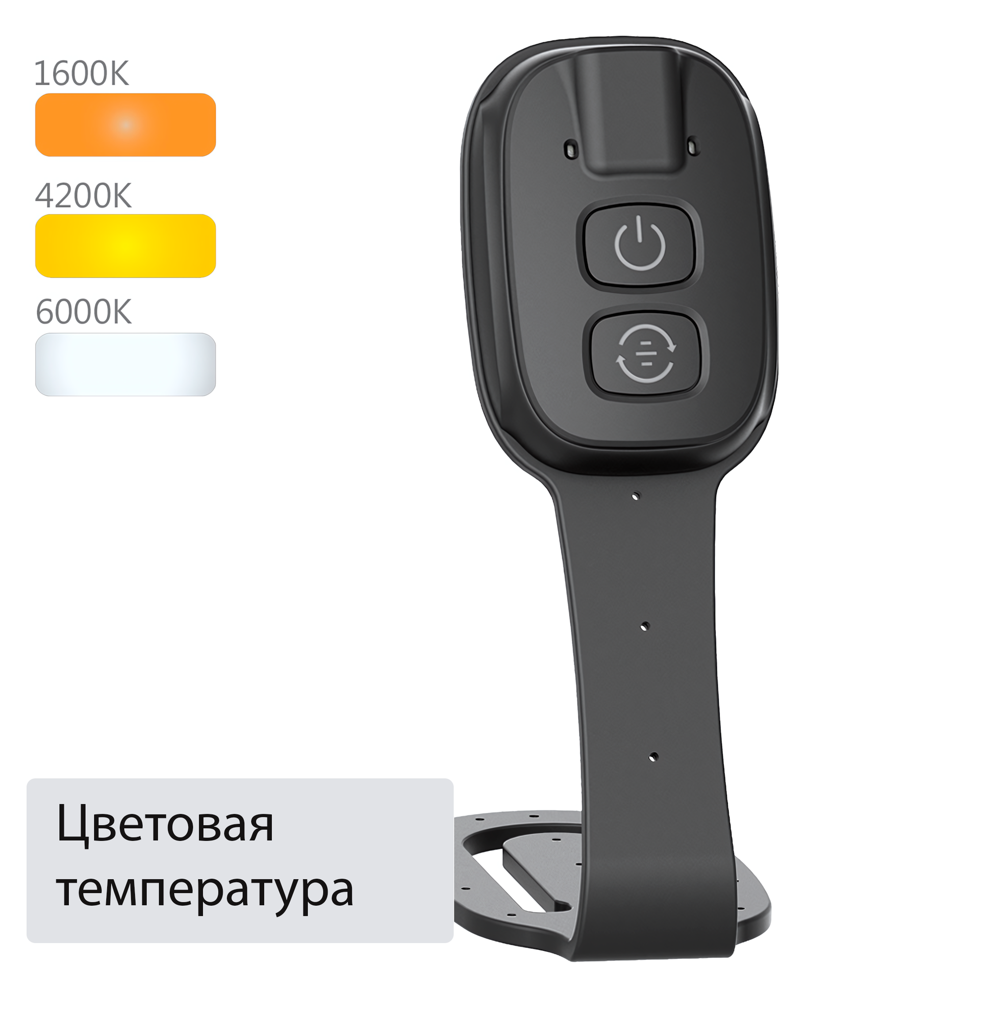 Купить Мини-лампа для чтения, на зажиме, 3 цветовых температуры, 5 режимов яркости, черный
