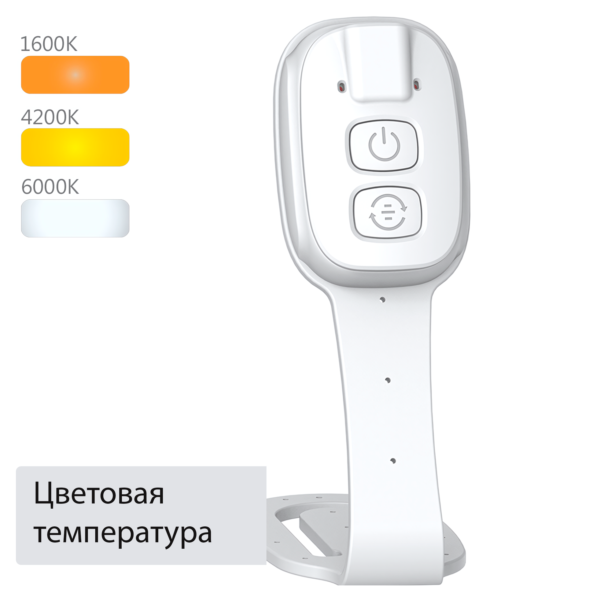 Купить Мини-лампа для чтения, на зажиме, 3 цветовых температуры, 5 режимов яркости, белый