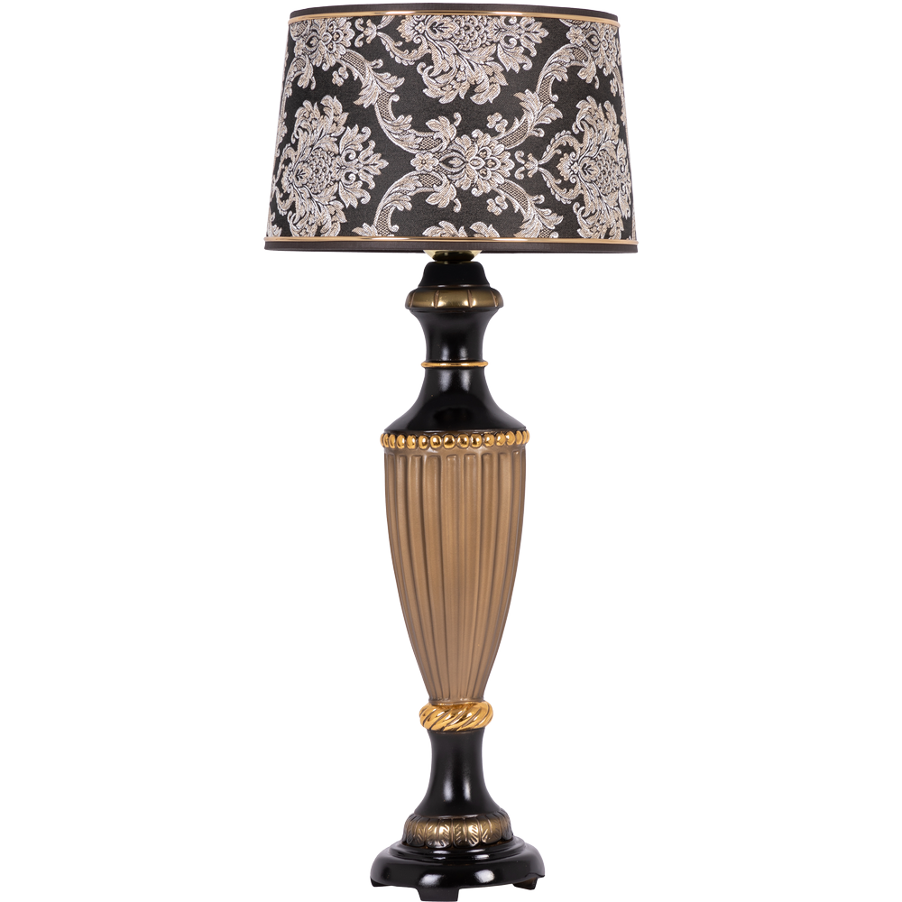 Купить Настольная лампа Bogacho Ваза ребристая бронзового цвета с абажуром Тюссо Ватикан черного цвета