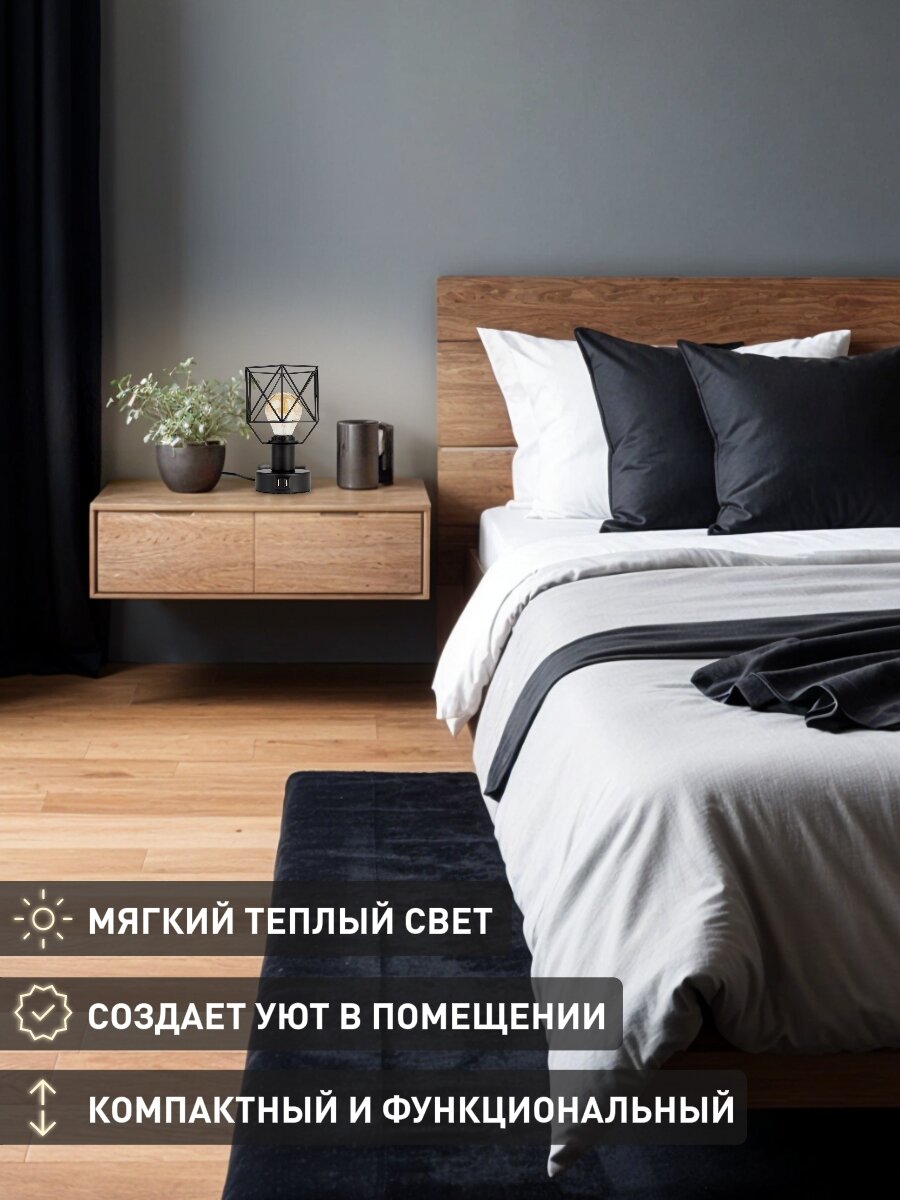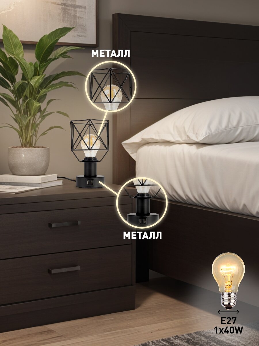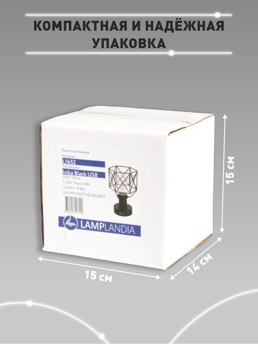 Лампа настольная Lamplandia L1652 IVIKA BLACK USB, E27*1 макс 40Вт интересное: