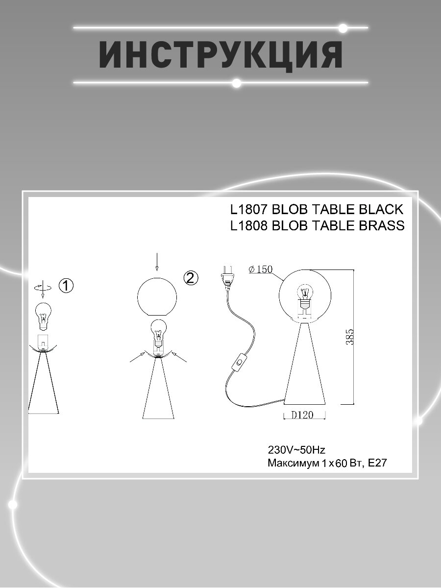 Лампа настольная Lamplandia L1808 BLOB TABLE BRASS, E27*1 макс 60Вт интересное: