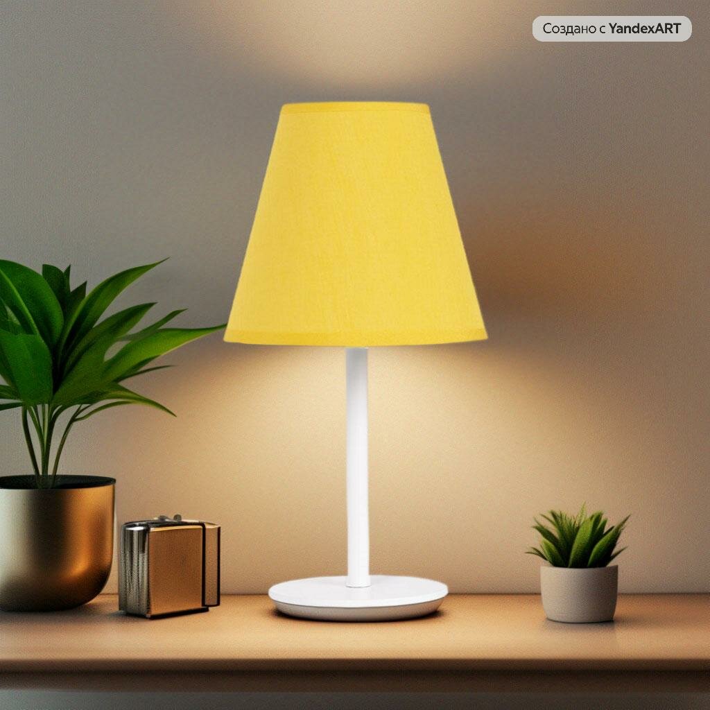 Светильник настольный с абажуром Yellow, торшер для интерьера, основание белое 220V 15W E14) интересное: