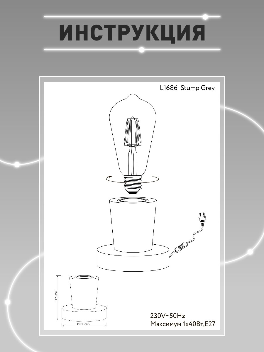 Лампа настольная Lamplandia L1686 STUMP GREY, E27*1 макс 40Вт интересное: