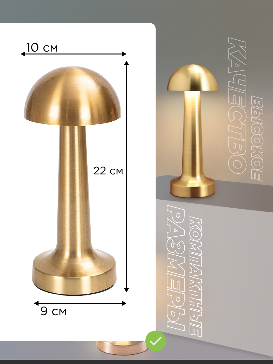 Лампа Sultanzone, настольная, беспроводная, с сенсорным управлением, LED, золотой цвет