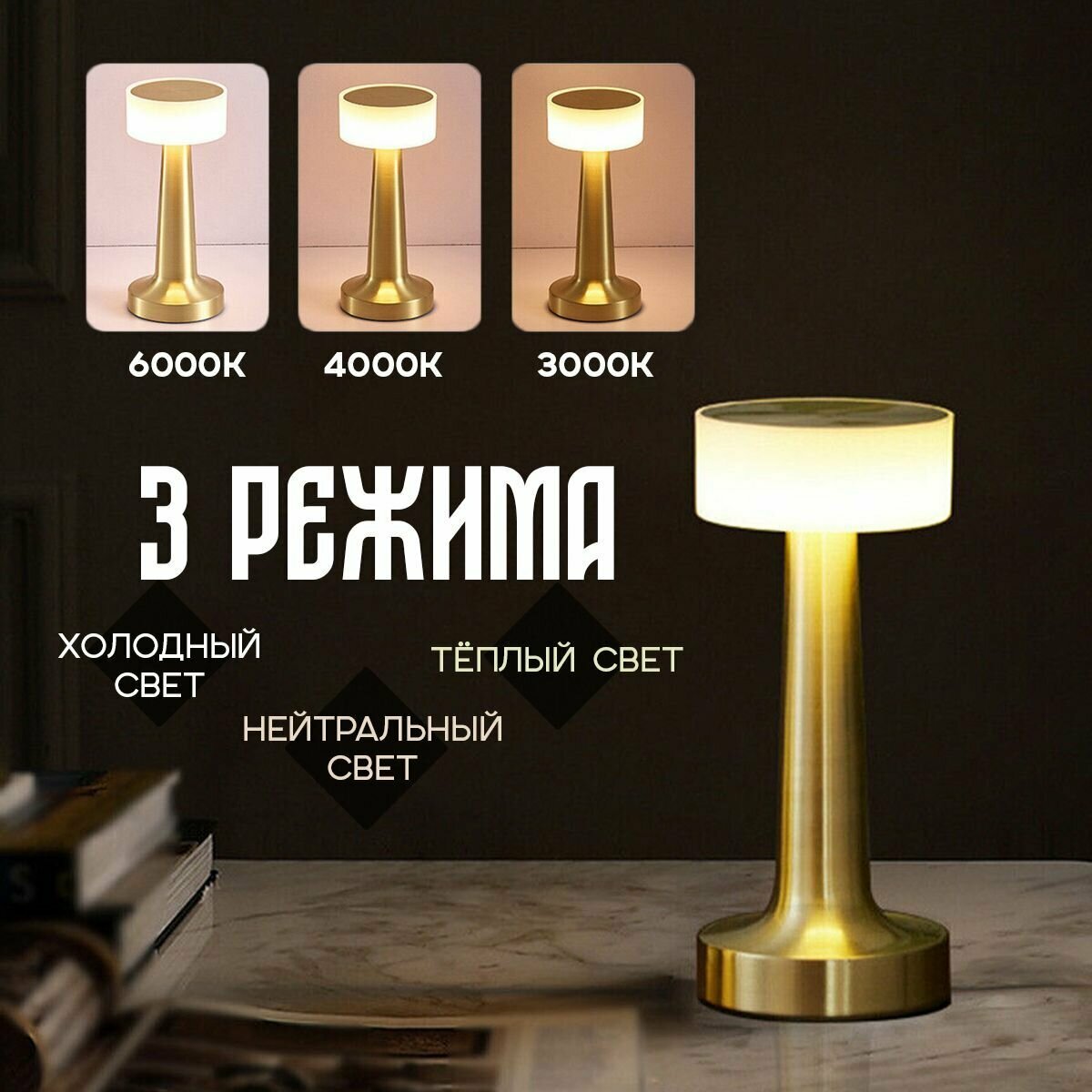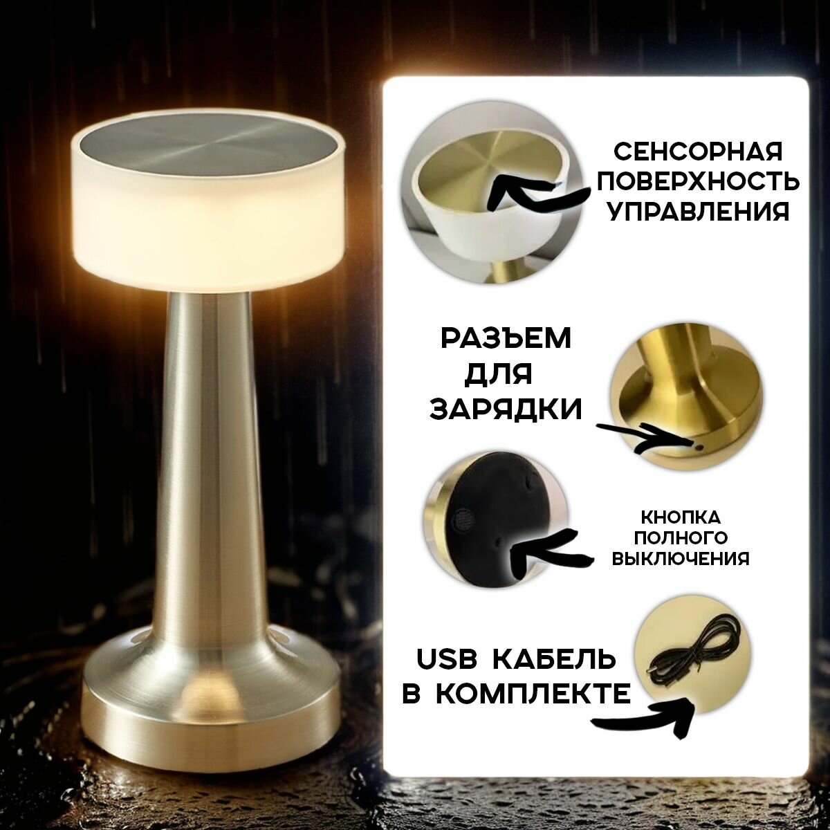 Лампа Sultanzone, настольная, беспроводная, с сенсорным управлением, LED, золотой цвет