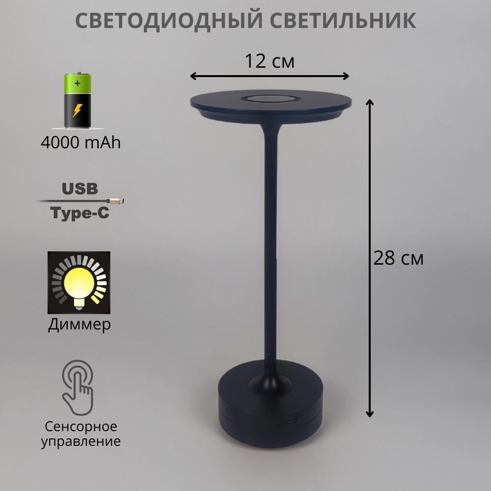 FEDOTOV Беспроводная настольная лампа светодиодная с аккумулятором FED-0002-BK интересное: