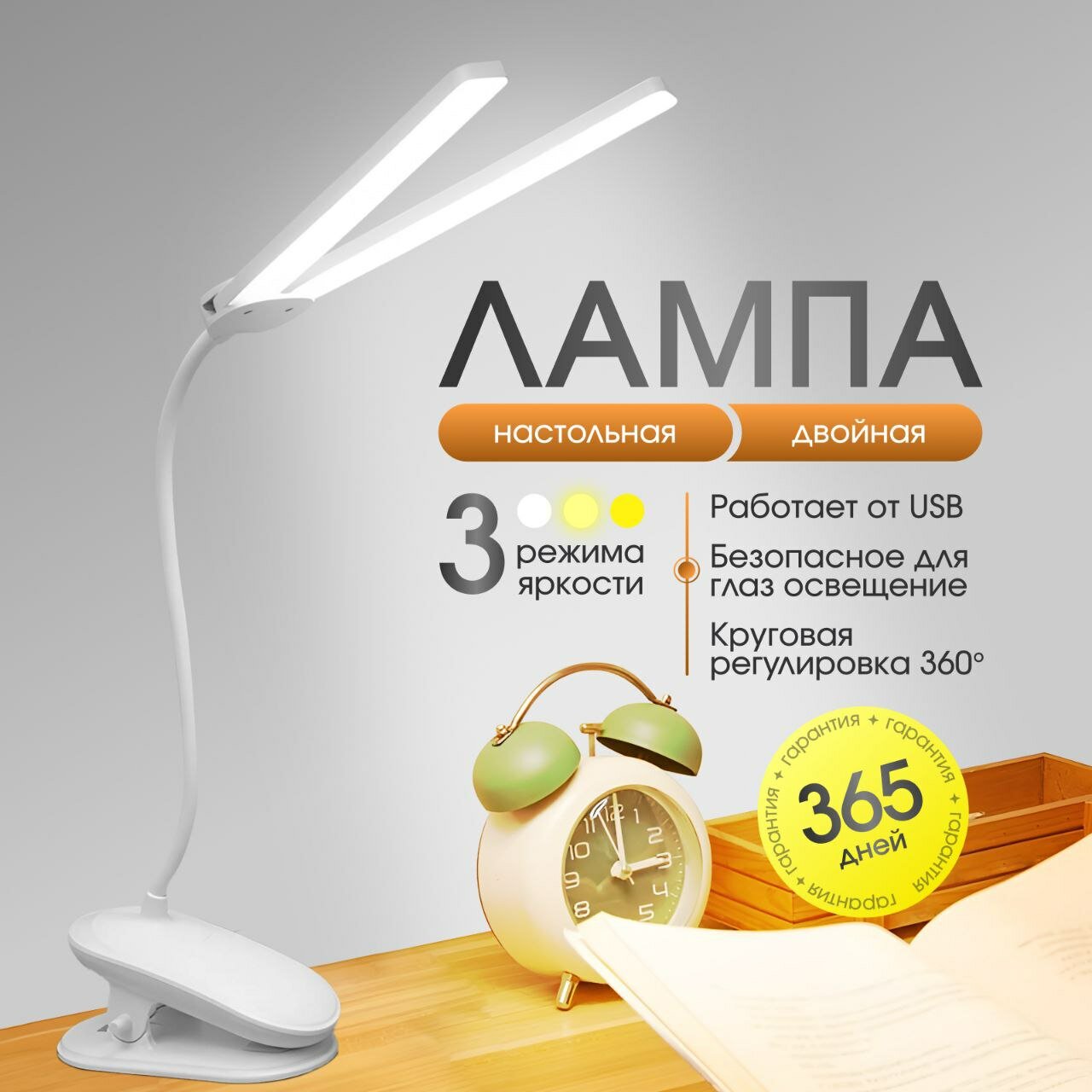 Настольный двойной светильник, регулировка 360 градусов, Лампа на прищепке, "ISISLAND"