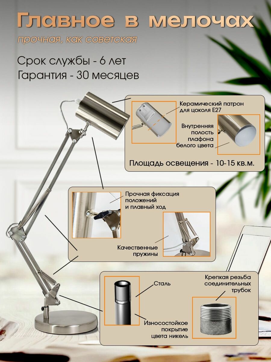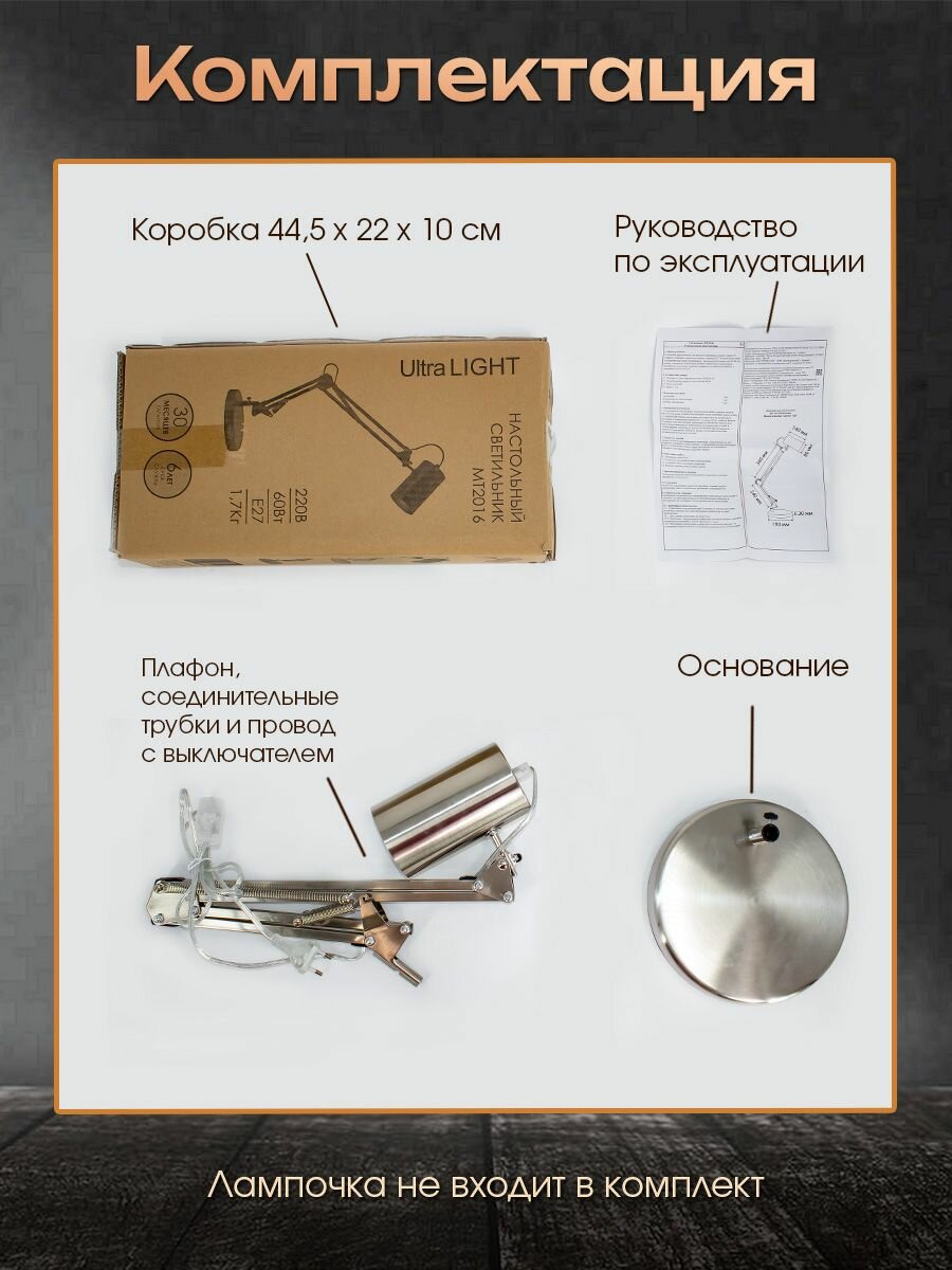 Настольная лампа светильник МТ2016 никель E27 220В Ultra LIGHT интересное: