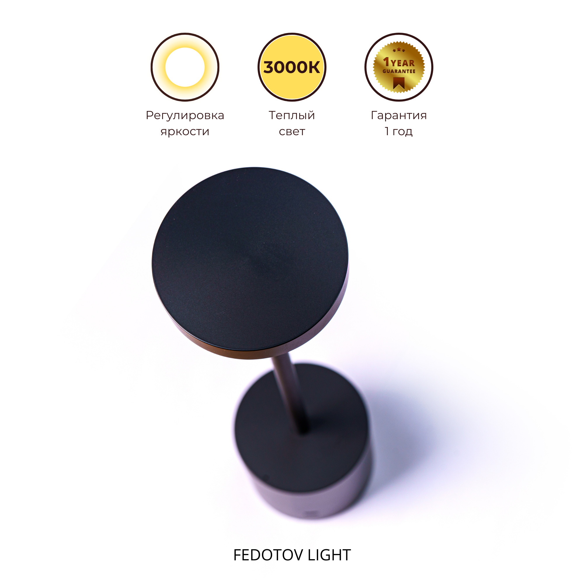 Беспроводная настольная лампа FEDOTOV светодиодная с аккумулятором 3000К черная интересное: