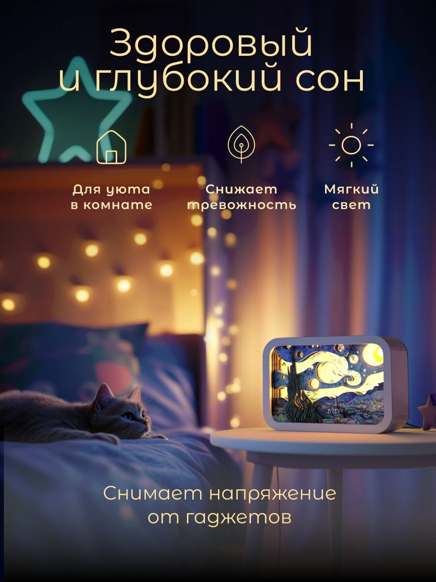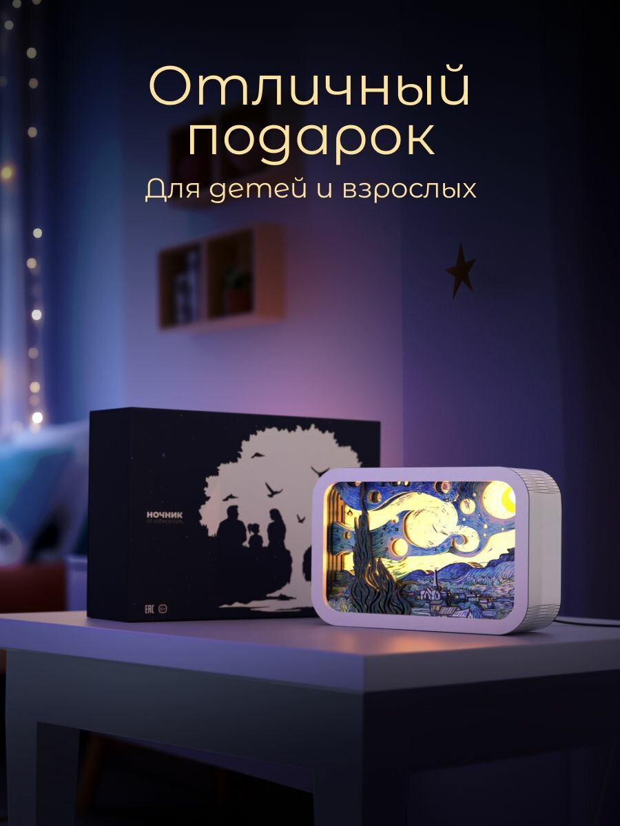 3D ночник картина Звездная Ночь Ван Гог / детский настольный 3Д светильник от VozWooden интересное: