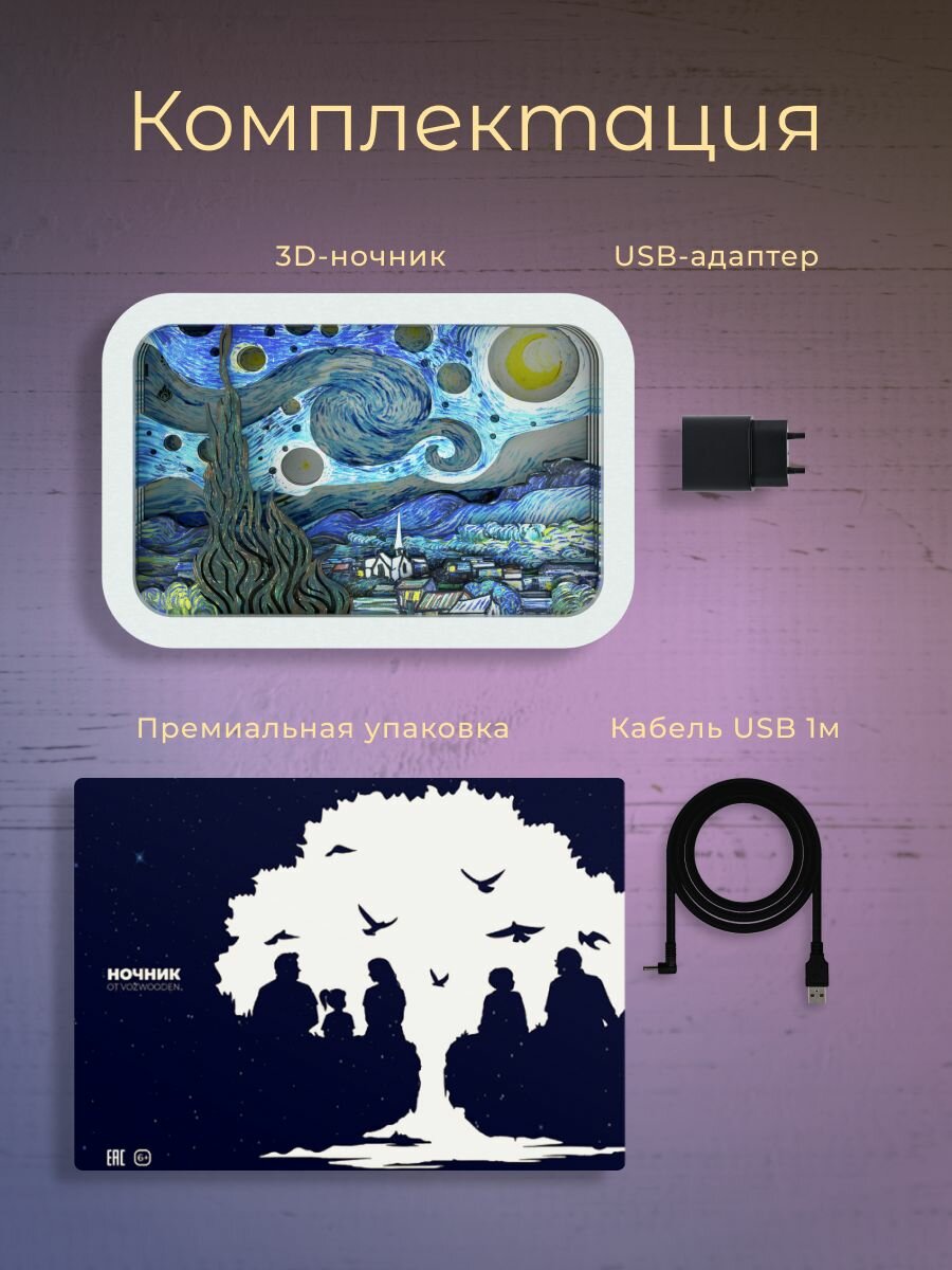 Купить 3D ночник картина Звездная Ночь Ван Гог / детский настольный 3Д светильник от VozWooden