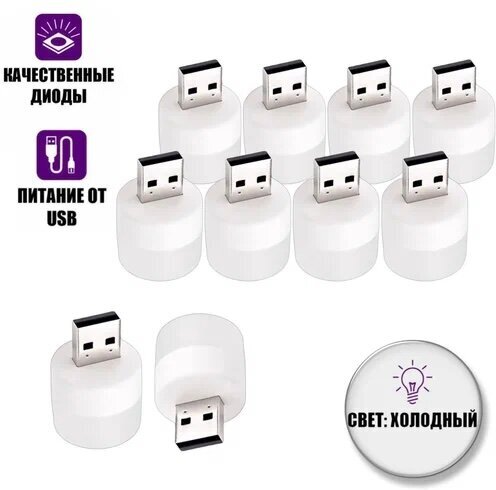 Портативная лампа светильник с питанием USB, холодный свет, 10 шт интересное: