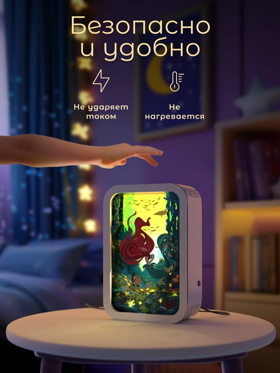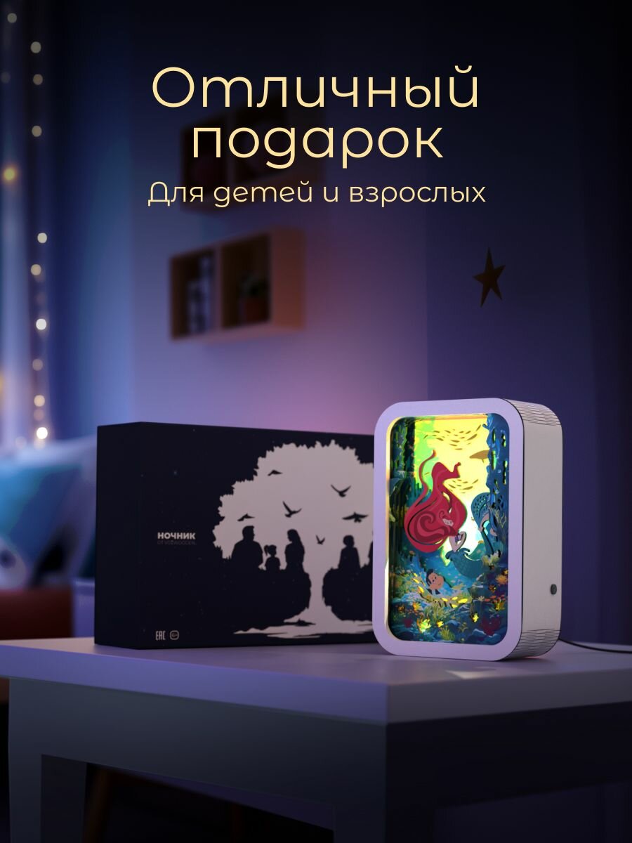 3D ночник картина Русалочка / детский настольный 3Д светильник от VozWooden интересное: