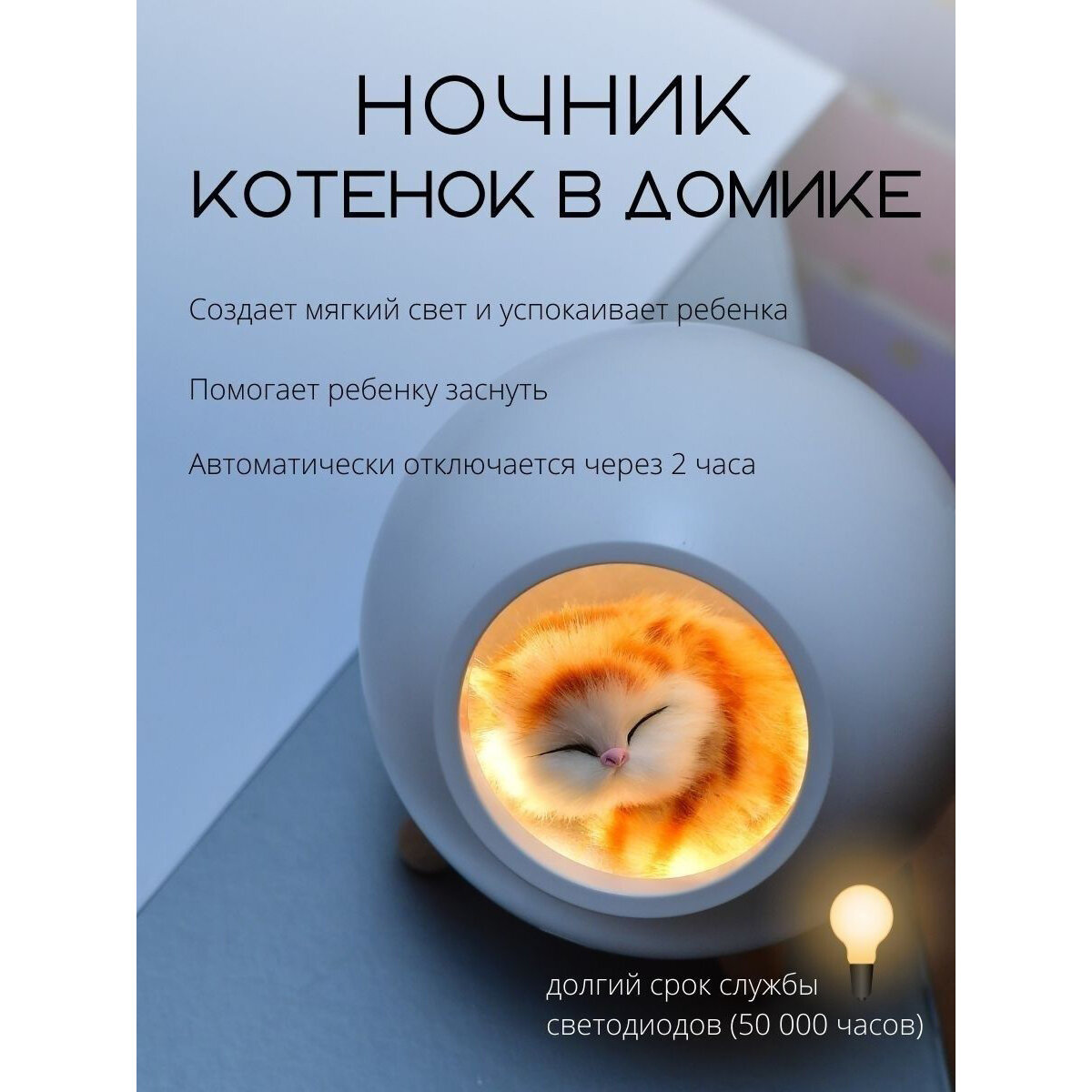 Ночник светодиодный комнатный "Котик в домике" интересное: