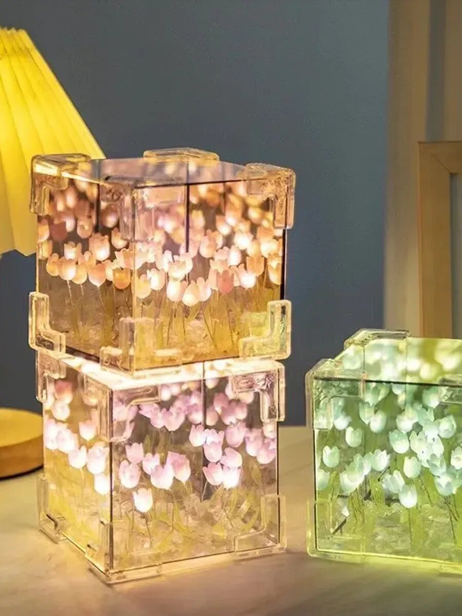 Ночник, светильник, зеркало с тюльпанами, собери сам, питание от USB, цветные