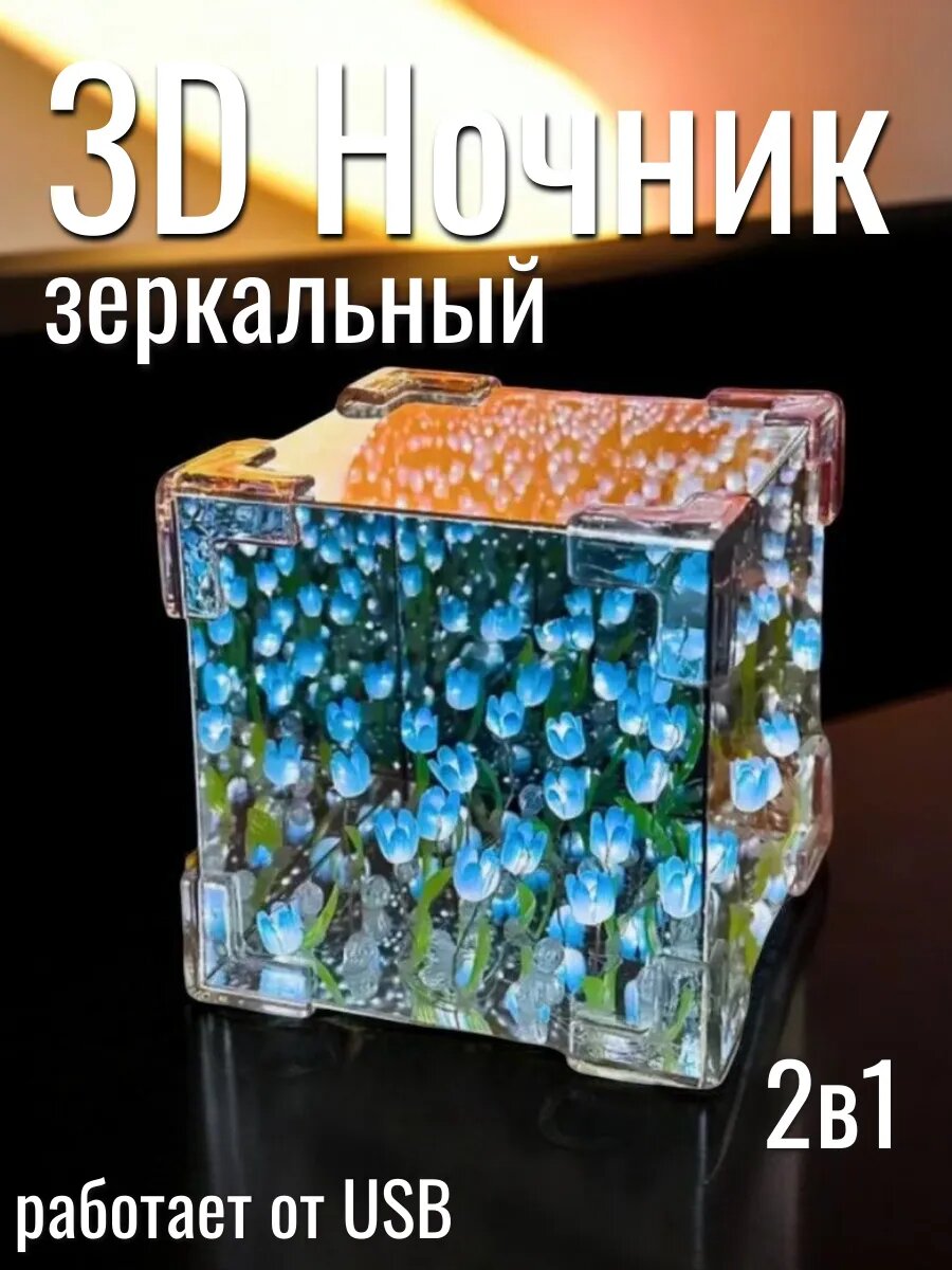 Ночник, светильник, зеркало с тюльпанами, собери сам, питание от USB, голубой интересное: