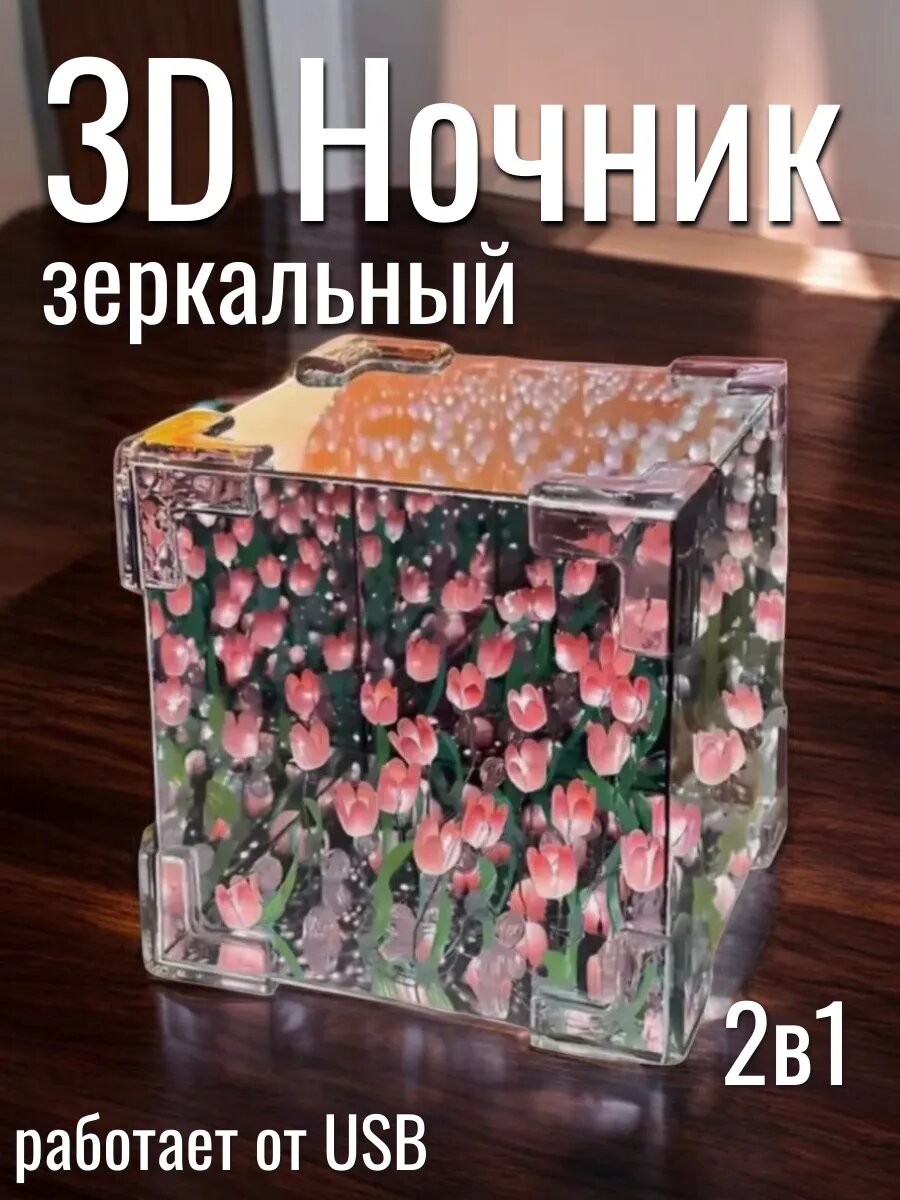 Ночник, светильник, зеркало с тюльпанами, собери сам, питание от USB, розовый интересное:
