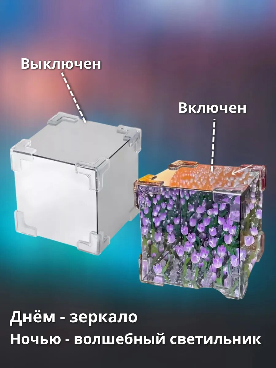 Ночник, светильник, зеркало с тюльпанами, собери сам, питание от USB, фиолетовые