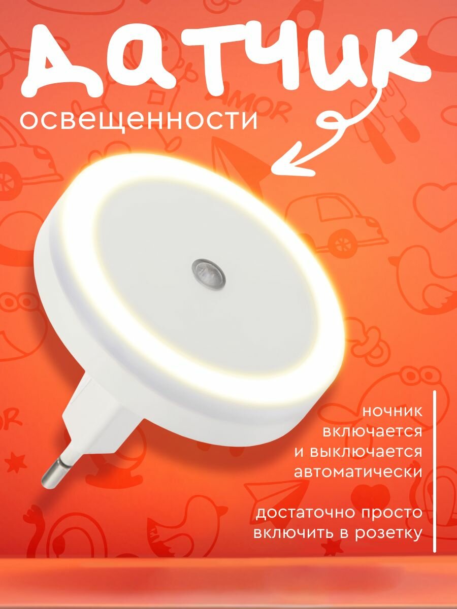 Ночник в розетку СТАРТ, круглый светильник с датчиком освещенности, 3000K интересное: