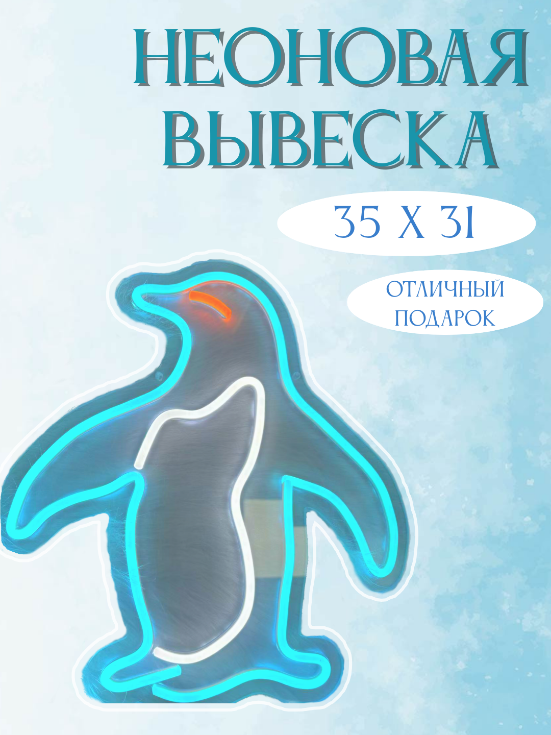 СохранитьНеоновая вывеска-ночник, светильник голубой пингвин, с держателями для крепления интересное: