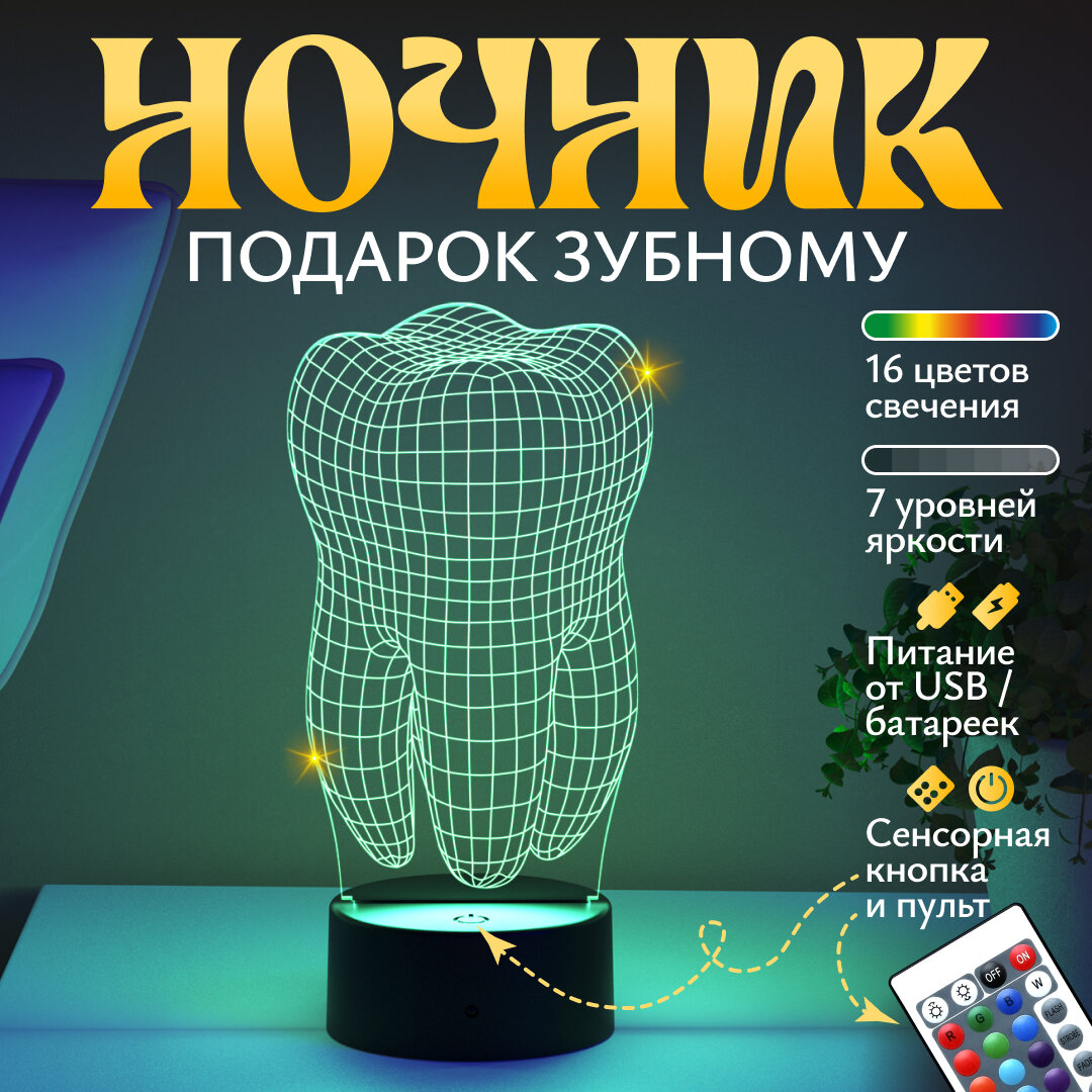 Ниже Вы можете прочитать отзывы на Ночник подарок "Зуб" стоматологу, ознакомится с подробными характеристиками, посмотреть интересные обзоры и фотографии на Ночник подарок "Зуб" стоматологу.