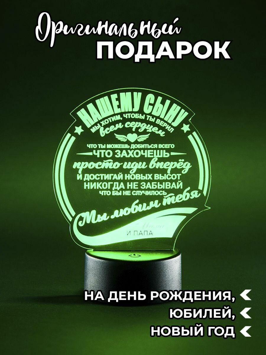 Купить Ночник светильник "Нашему сыну." Подарок сыну на день рождения, 23 февраля.