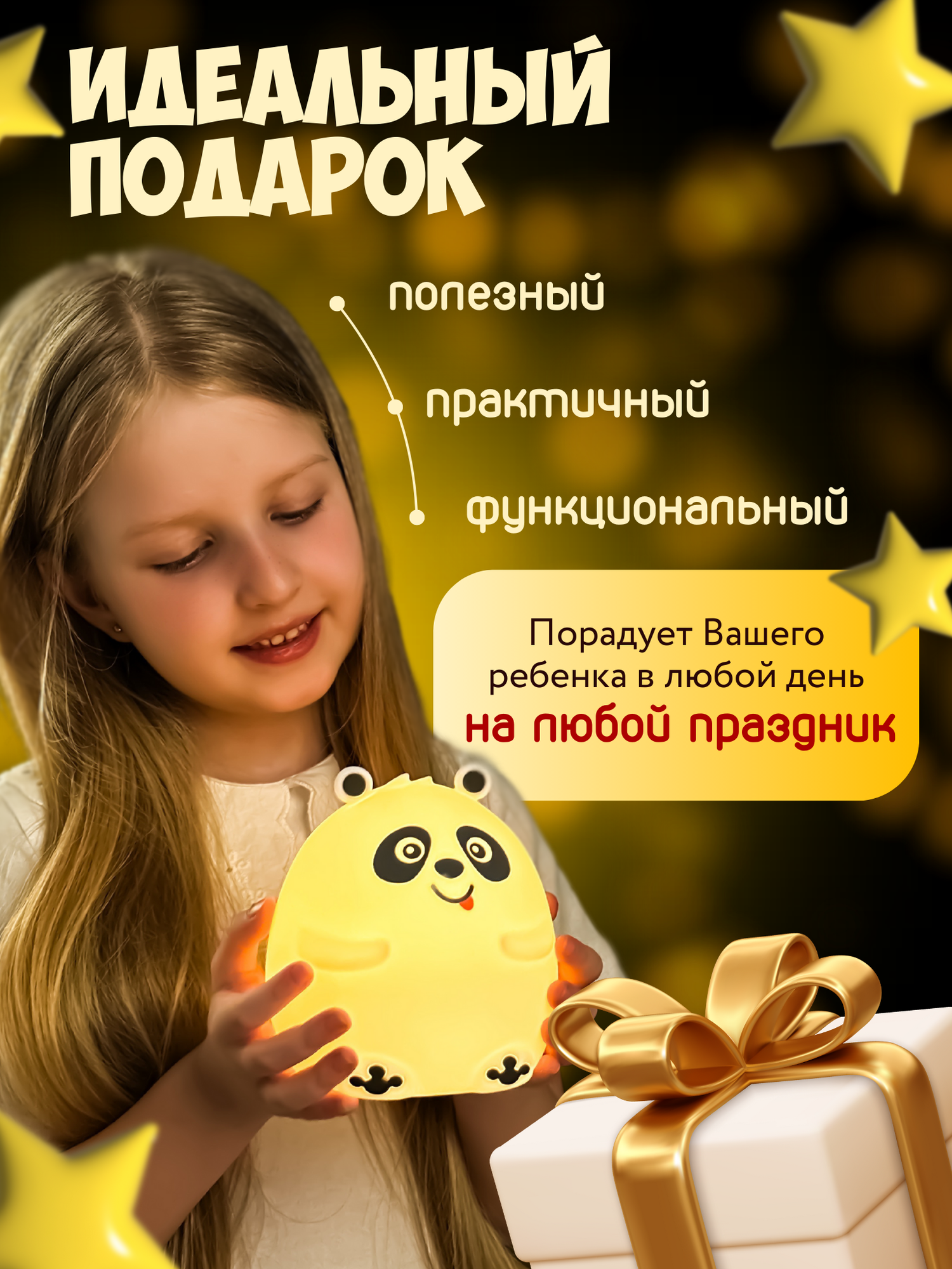 Ночник силиконовый WH-A11 "Панда", USB, аккум. 1200мАч, 3000К+RGB (7 цветов) Включай